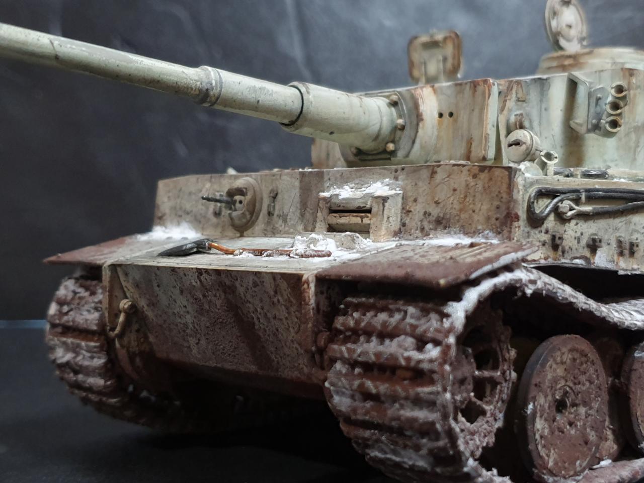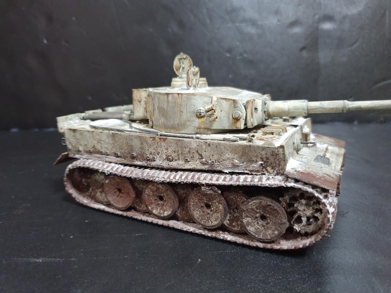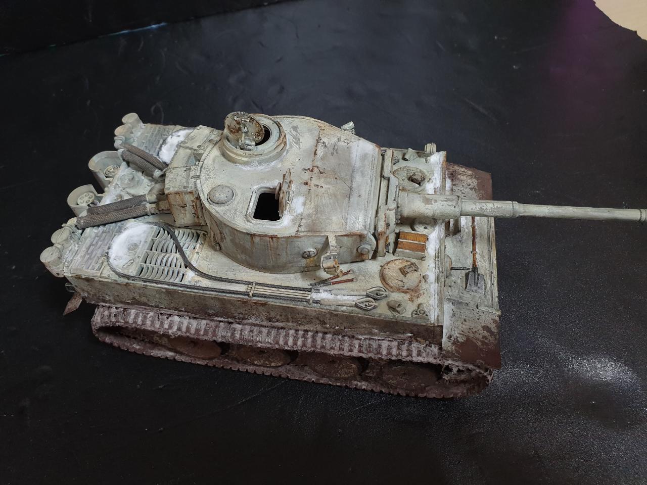 제품은 아카데미에서 아주 옛날에 출시 하였던 티이거 입니다 동부전선 동계위장 을 하였구요 상채 중간중간에 눈이 쌓인 표현을 조금 해봤습니다 동계 위장이 벗겨져서 녹이난 표현도 조금 연습도 할겸...