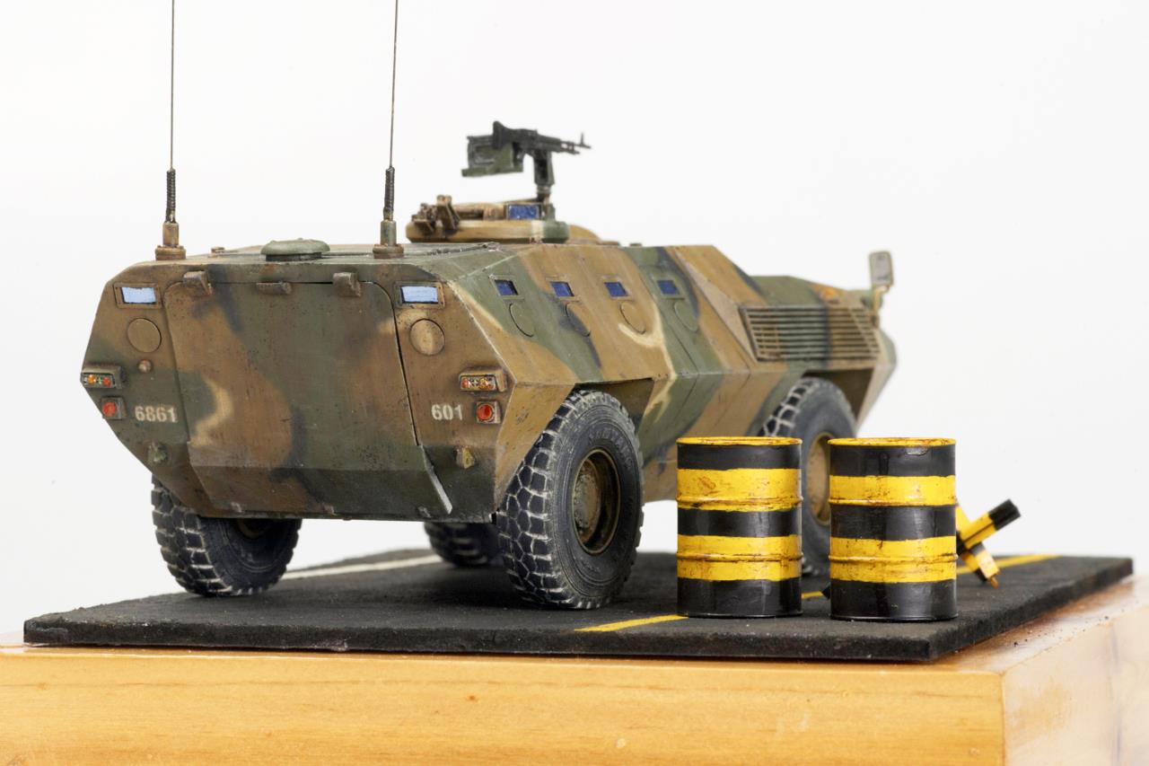 안녕하세요. 데프모델의 레진제품 KM900 입니다. 예전 서울시내에서도 심심찮게 볼 수 있었던 장갑차량이지요. 이테리 피아트사의 차량을 기아에서 라이센스 생산했던 것으로 알고 있습니다. 도색은 IPP 한국 특색으로 했고 지면은 AK 아스팔트 표현제를 사용했습니다. 마킹은 고증을 전혀 무시하고 붙였으므로 별 의미는 없습니다. 레진 제품이 처음이라 조립시 실수를 많이 했는데 자세히 보면 티가 납니다. ㅎㅎ 양해 바랍니다. ^^