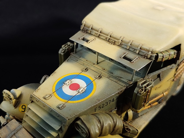 각 부분의 악세사리들은 레전드 프로덕션 제품 중에서 적절한 걸로 골라서 썼고 제리캔은 타미야 차량 악세사리 세트에서 영국군 제리켄을 적용해주고 맨 앞에 올려 놓은 나무 상자는 타미야 키트에 들어 있는 적당한 상자에 남는 에칭쪼가리를 붙여서 만들어 주었습니다.