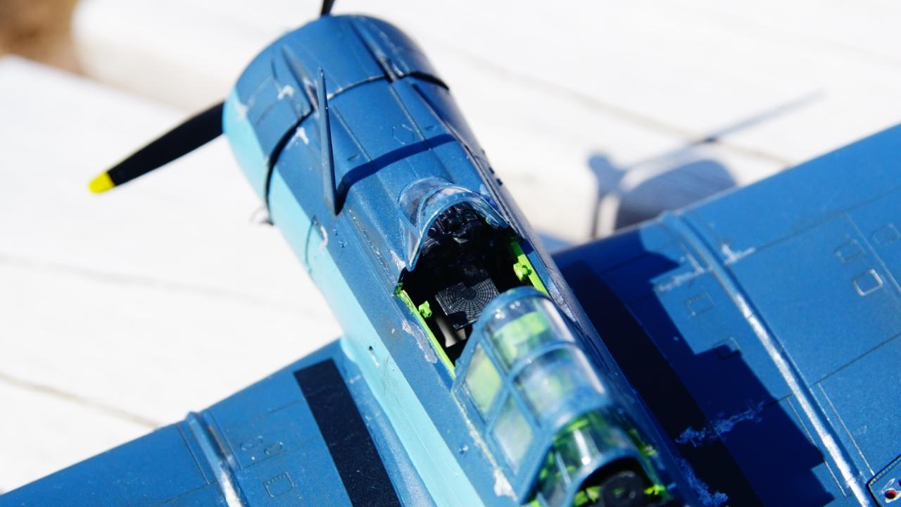 캐노피를 전부 접어줄려고 했는데 이게 간섭이 생기더군요... 그래서 가운데 캐노피 말고도 조종석과 바로 뒤 캐노피를 제외한 뒤의것은 쓰지 않았습니다. 실제 전투에서 어밴져도 그렇고 조종사는 캐노피를 닫지 않았다고 합니다. (어차피 후방사수의 경우 따라오는 적기를 막기 위해 캐노피를 열어야 했지만...) 그 이유는 피격당해서 추락하면 필히 바다에 떨어지게 되는데 탈출해야 하는 급박한 상황에서 바닷물이 끊임없이 밀고 들어오는데 기체의 무게로 인해 바닷속으로 쑤우우욱 내려가면서 캐노피를 밀고 탈출할 시간적 여유가 많지 않아서 라고 합니다.