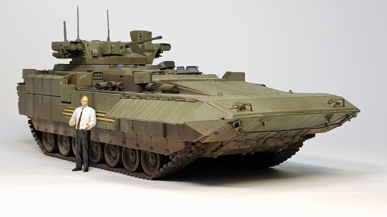 트럼페터 T-90MS에 포함된 1/35 푸틴 인형과의 비교샷.