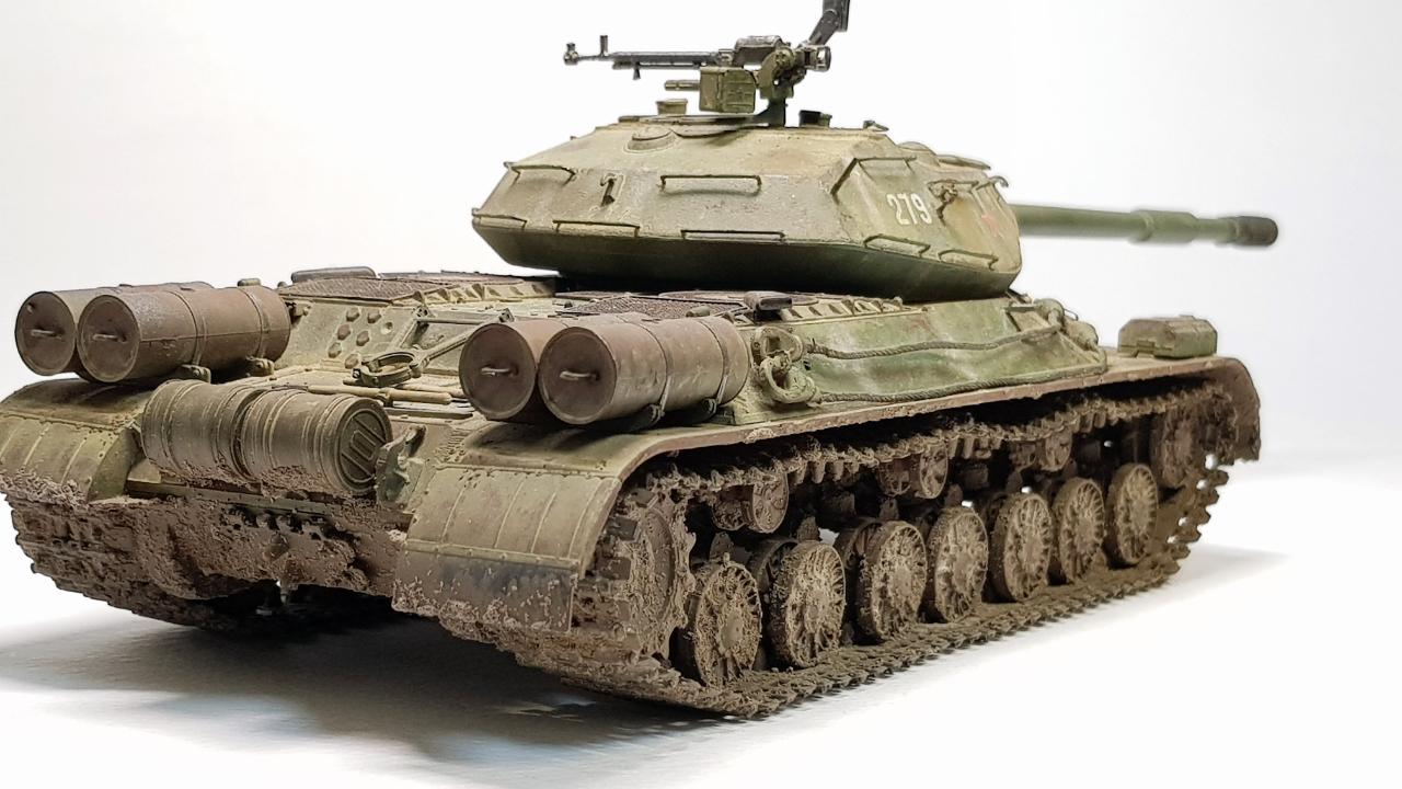 주포는 보통의 IS 중전차 시리즈의 주포인 D-25T 122mm 주포이지만, 여기서는 OBJ.279의 주포로 교체 했습니다. 나름 월드오브탱크에 등장하는 버전으로 보여주려 했는데, 나중에 알고 보니 월탱버전의 122mm M62-T2(T-10의 주포)와는 모양만 비슷하지 구경도 다른 (130mm) 포더군요.
