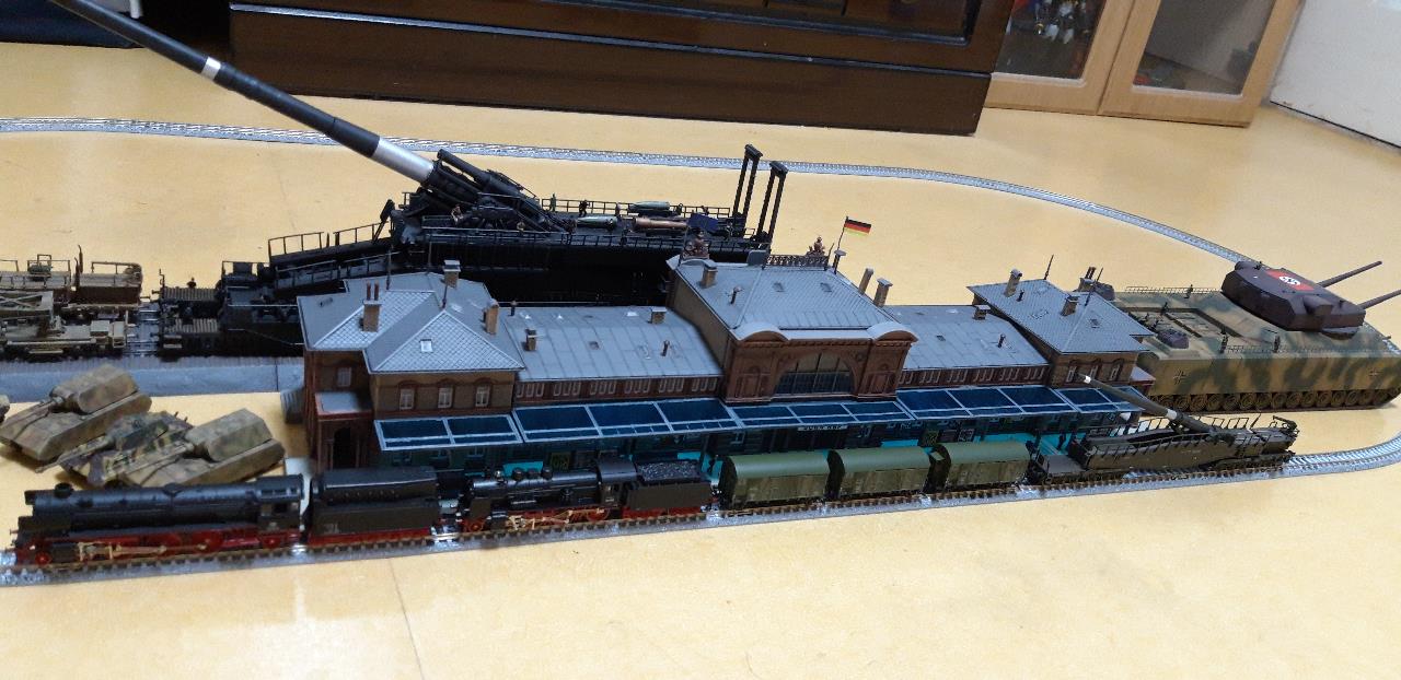 군수공장을 지나는 2차대전 독일기관차를 올려봤습니다. 뒤에 연결된 작은 기차 한개 빼곤 거의 도색과 조립을 필요로 했습니다. 이제 보니 모은게 꽤 됩니다.