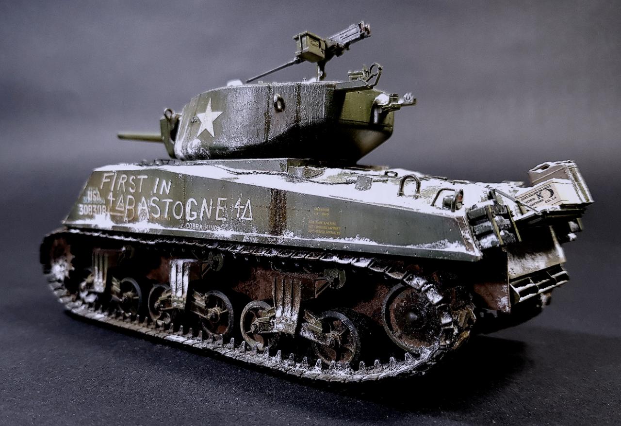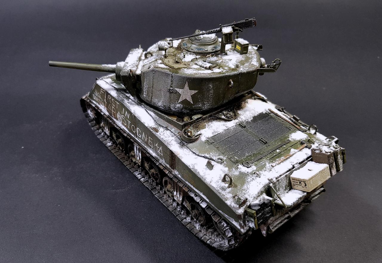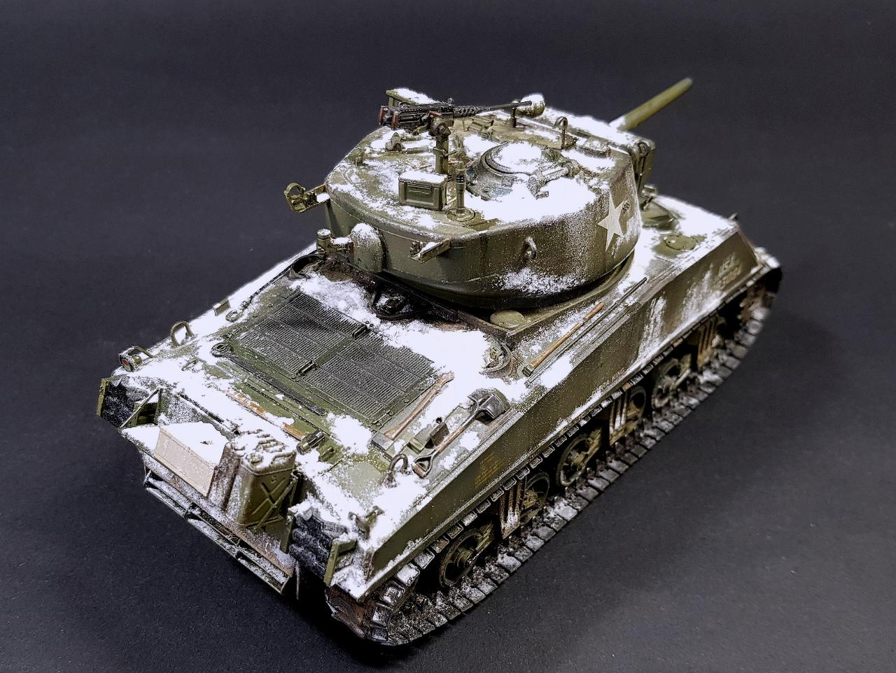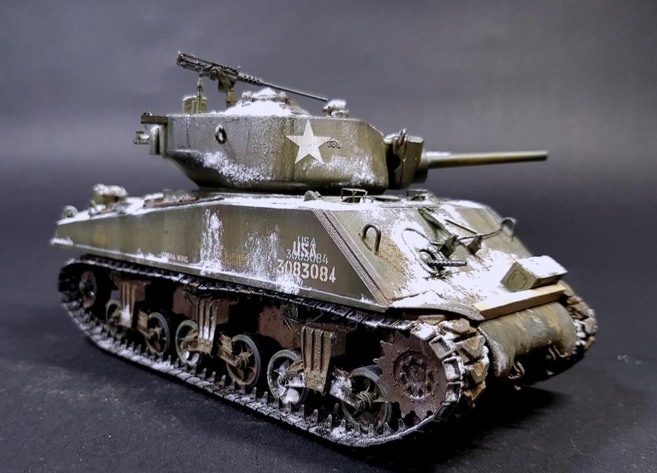 아카데미 점보 셔먼입니다. 실차 사진을 참고로 디테일 업을 해주고 최대한 바스통의 겨울 분위기를 살려 보려했는데 처음 해보는 눈 표현이라 많이 어색하네요.