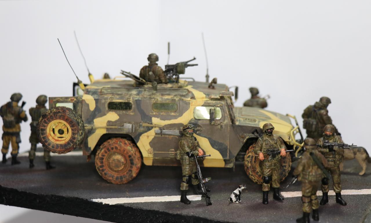 보병은 Zvezda 제품과 Evolution 제품이고 자량은 Meng- RAHMV GAZ-233014 STS 'Tiger' 제품임니다.