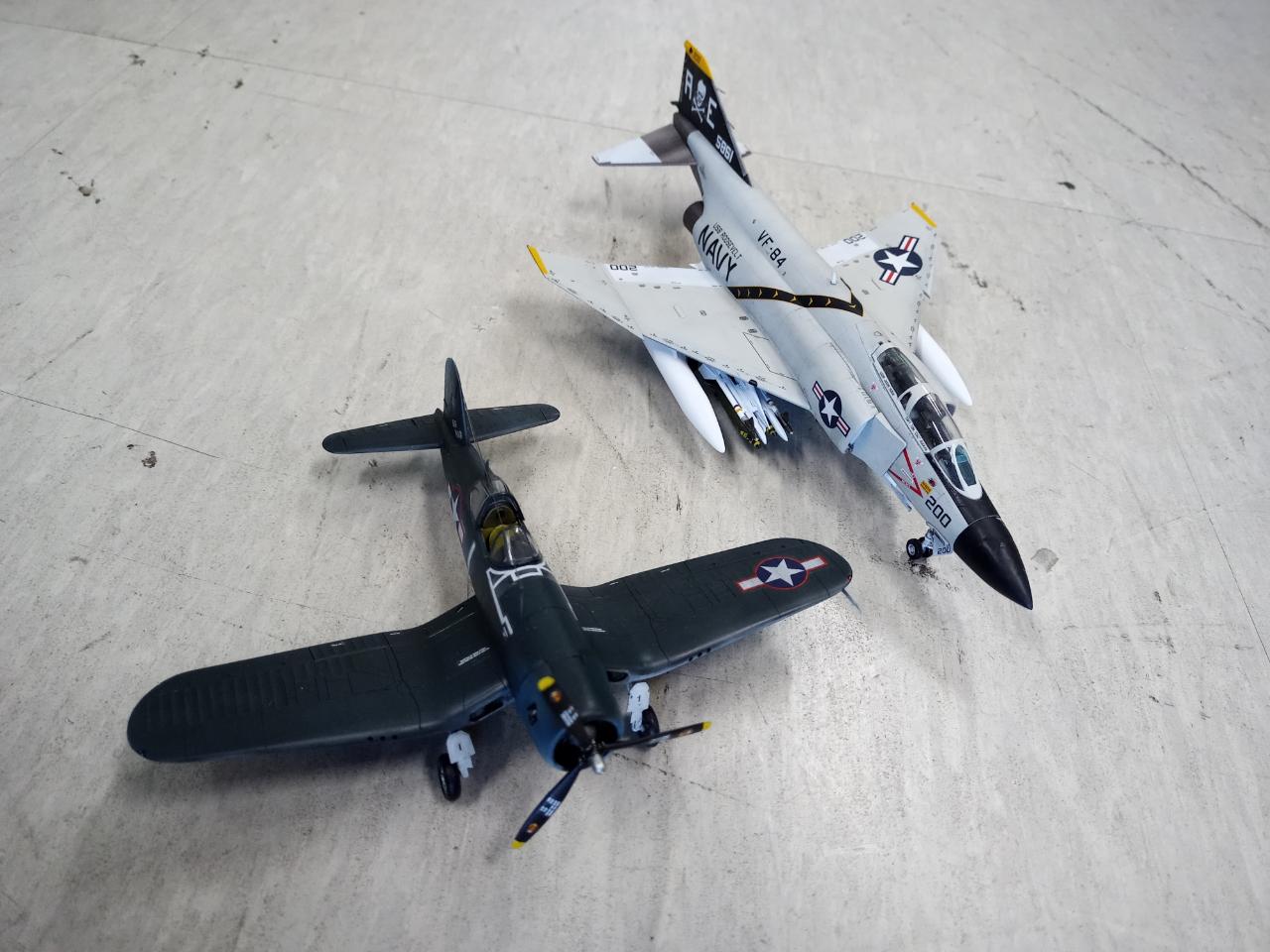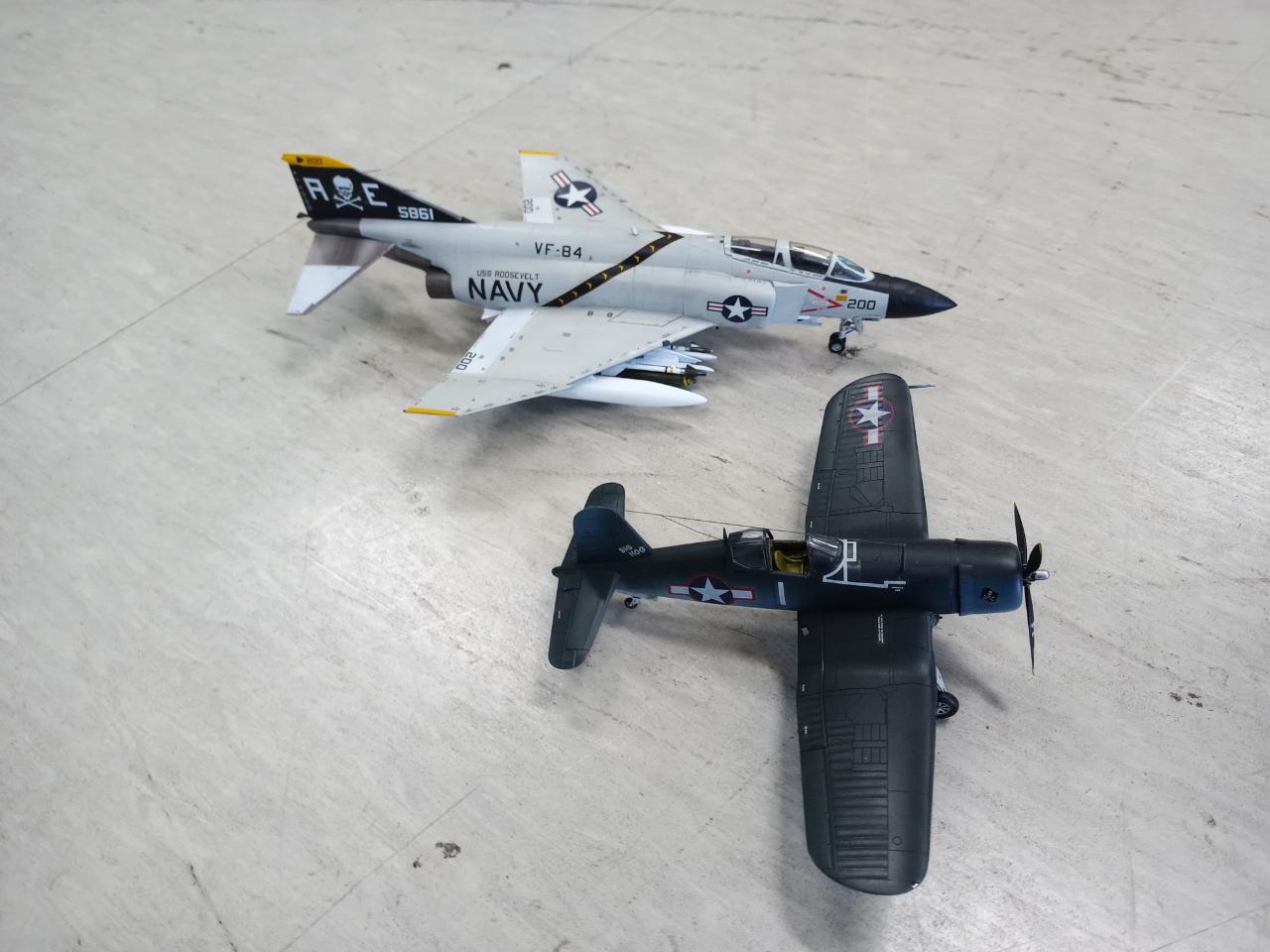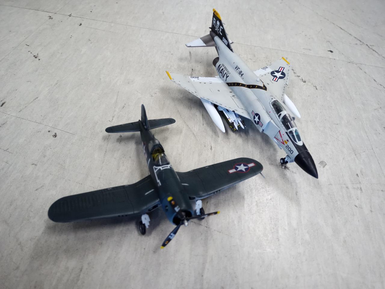 졸리로저스 전 기체에 도전중입니다 현재 완성된 두 기체 올립니다 VF-17 F4U-1A 와 VF-84 F-4J 입니다