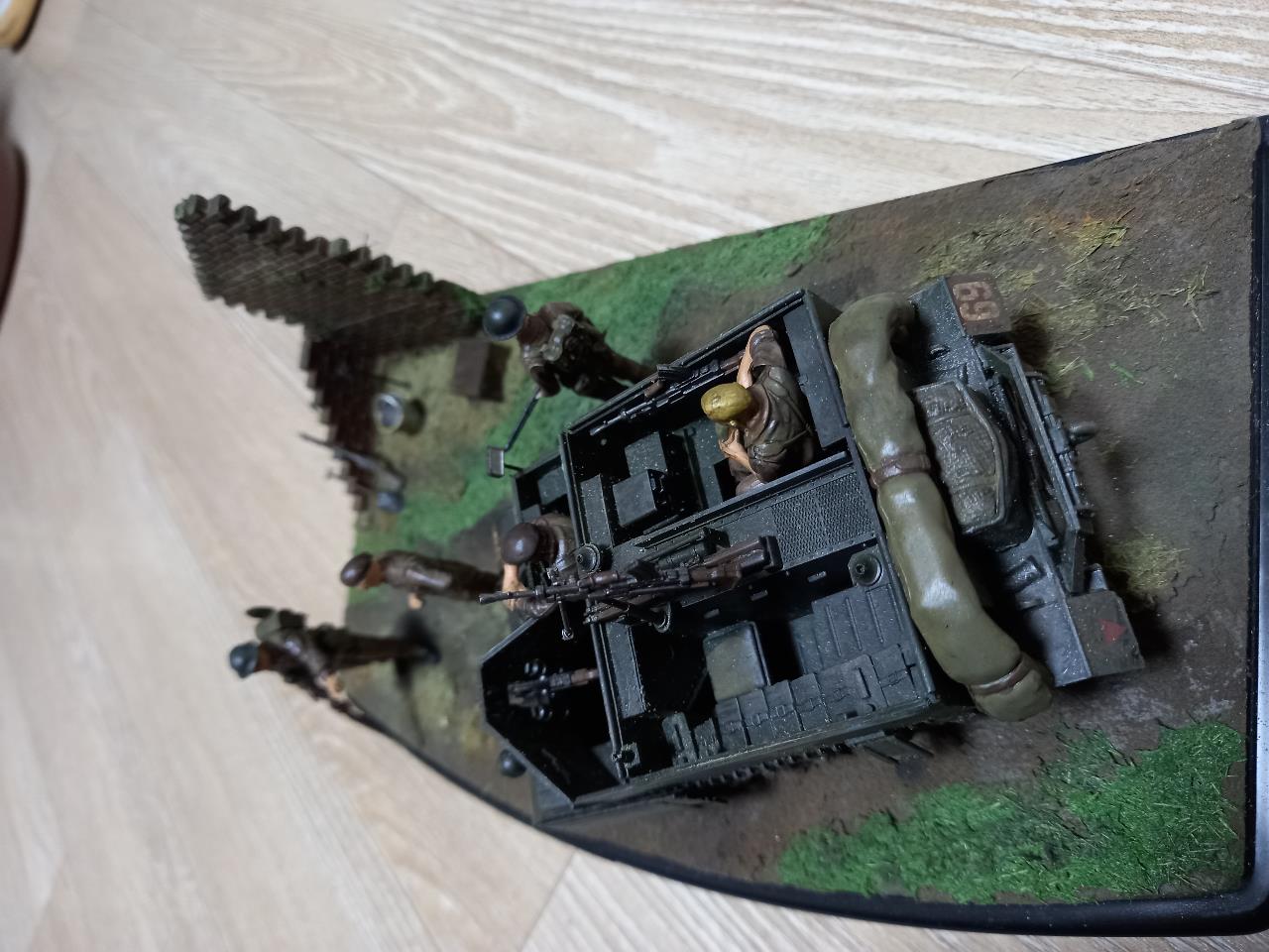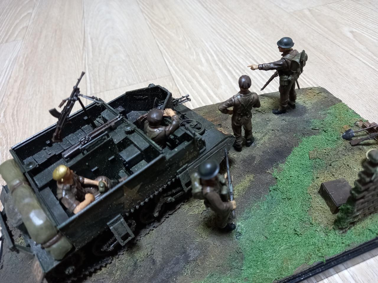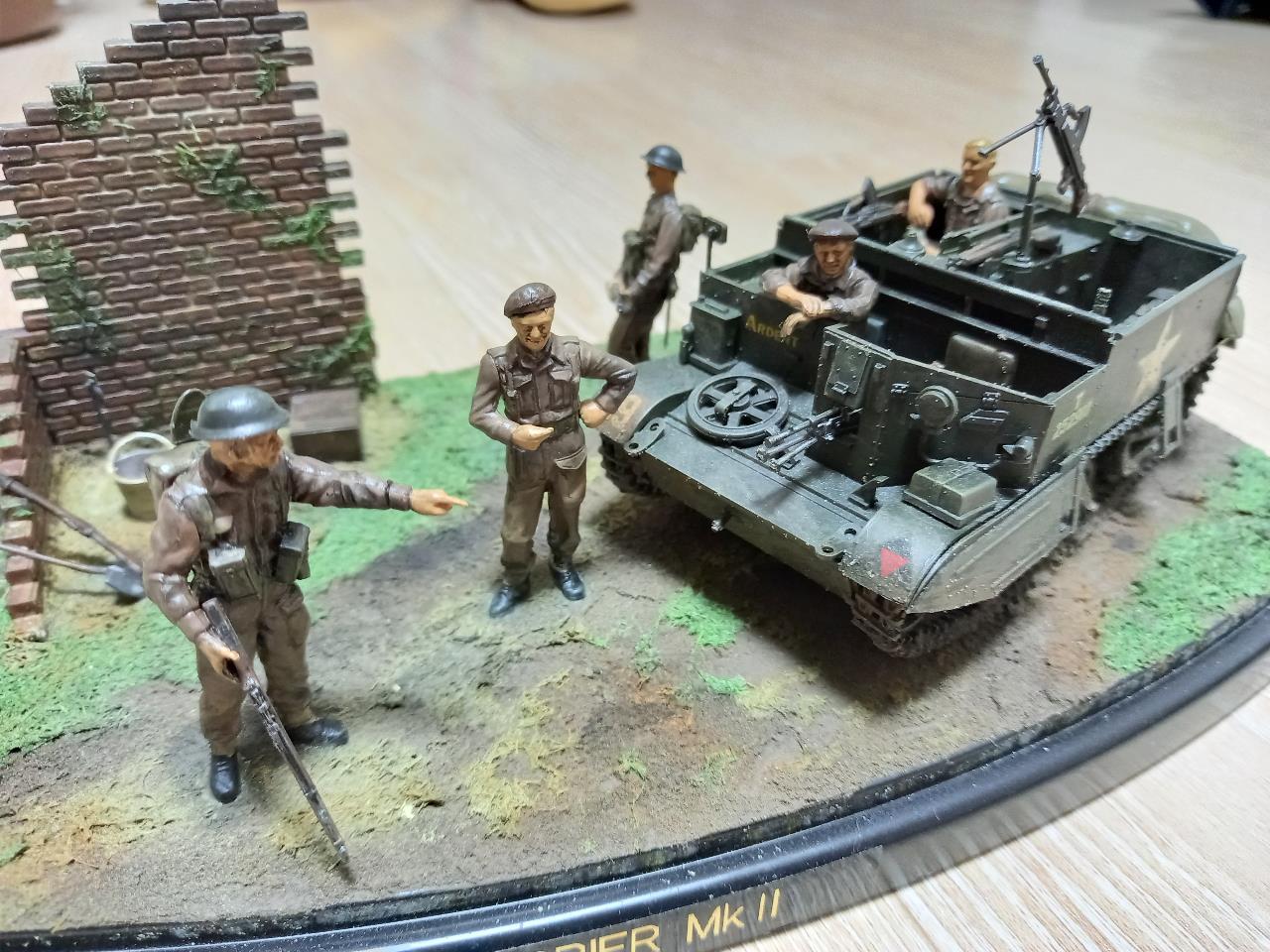 2차 세계대전 중 노르망디 상륙작전이후 독일로 진격중인 영국군을 묘사해 보았습니다. 영국군 스카우트 캐리어 및 영국군 보병이 조그만 디오라마의 주제입니다.