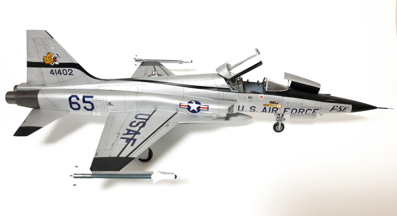 2004년도에 제작한 ACE 모델의 1/32 F-5E TIGER II 입니다. 키트는 90년대 초반쯤에 동네 문방구에서 5,000원 주고 산 기억이 나네요. 그 후 강남모형에서 동일제품 재발매를 꽤 오랫동안 했었죠. 그 때 당시 국내제품 중 이렇게 큰 스케일에 디테일 까지 좋은 제품은 별로 없었지요. 설명서가 다 영어로 되어 있던데 아마 수출제품 이었던 것 같습니다. 키트구입일로부터 10여년이 지나 키트를 제작했었다 보니 데칼이 다 갈라져서 강남모형키트를 또 하나 구매했던 아픈 기억이...