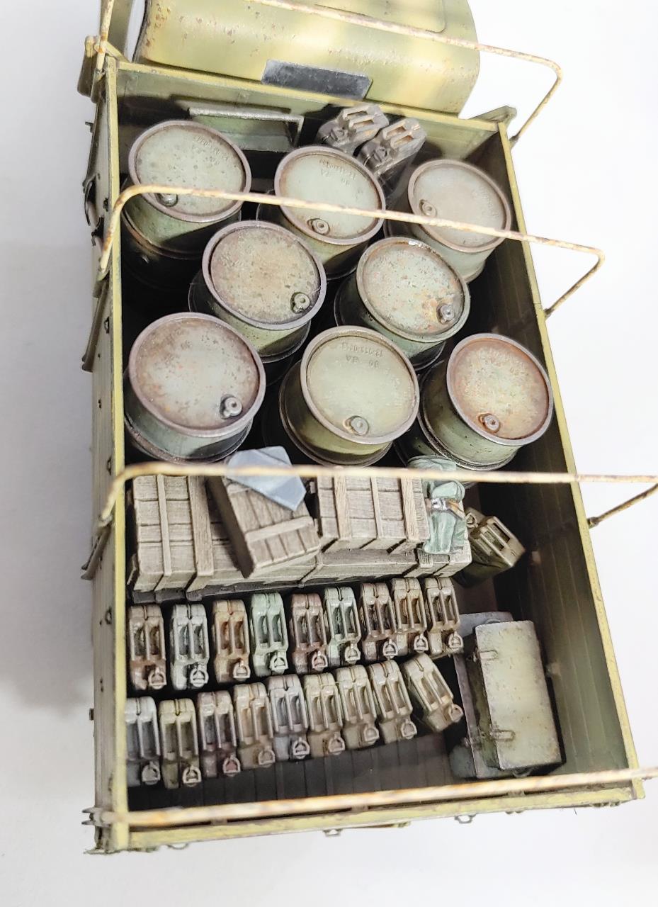 캔버스 호로의 프레임은 황동선으로 자작했고 짐칸의 악세사리들은 타미야랑 Value gear제를 사용하였습니다.