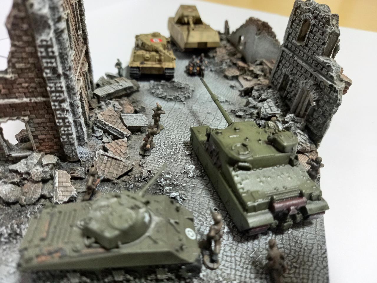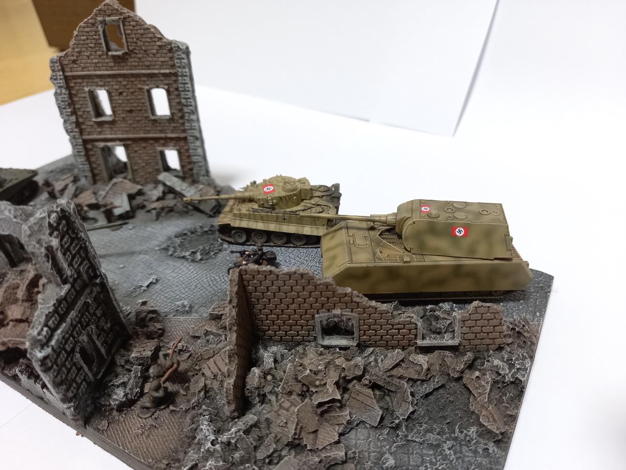 베를린 전장의 리얼함을 강조하기 위해 도색하고 이렇게 만들어 봤습니다. 재료 메이커는 여러가지라 실로 다 말씀드리긴 어렵네요