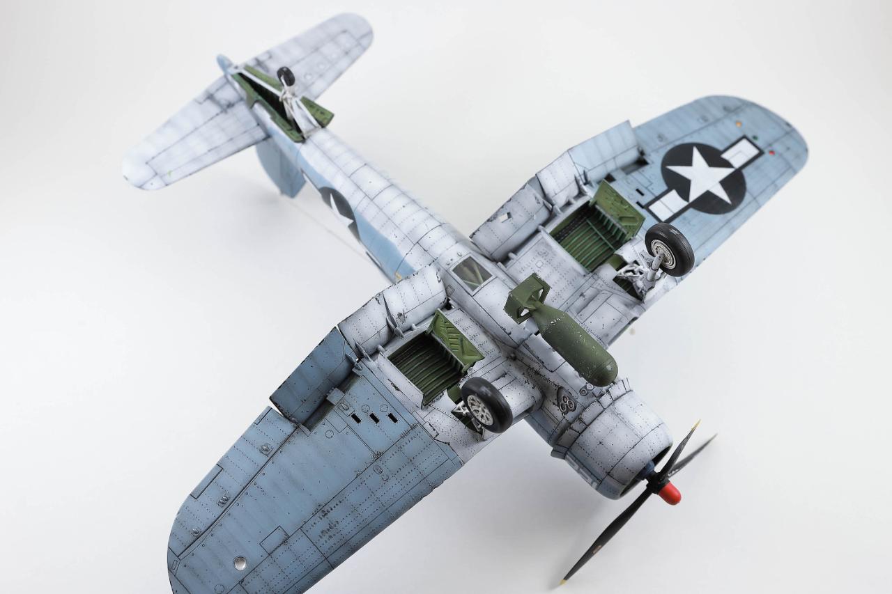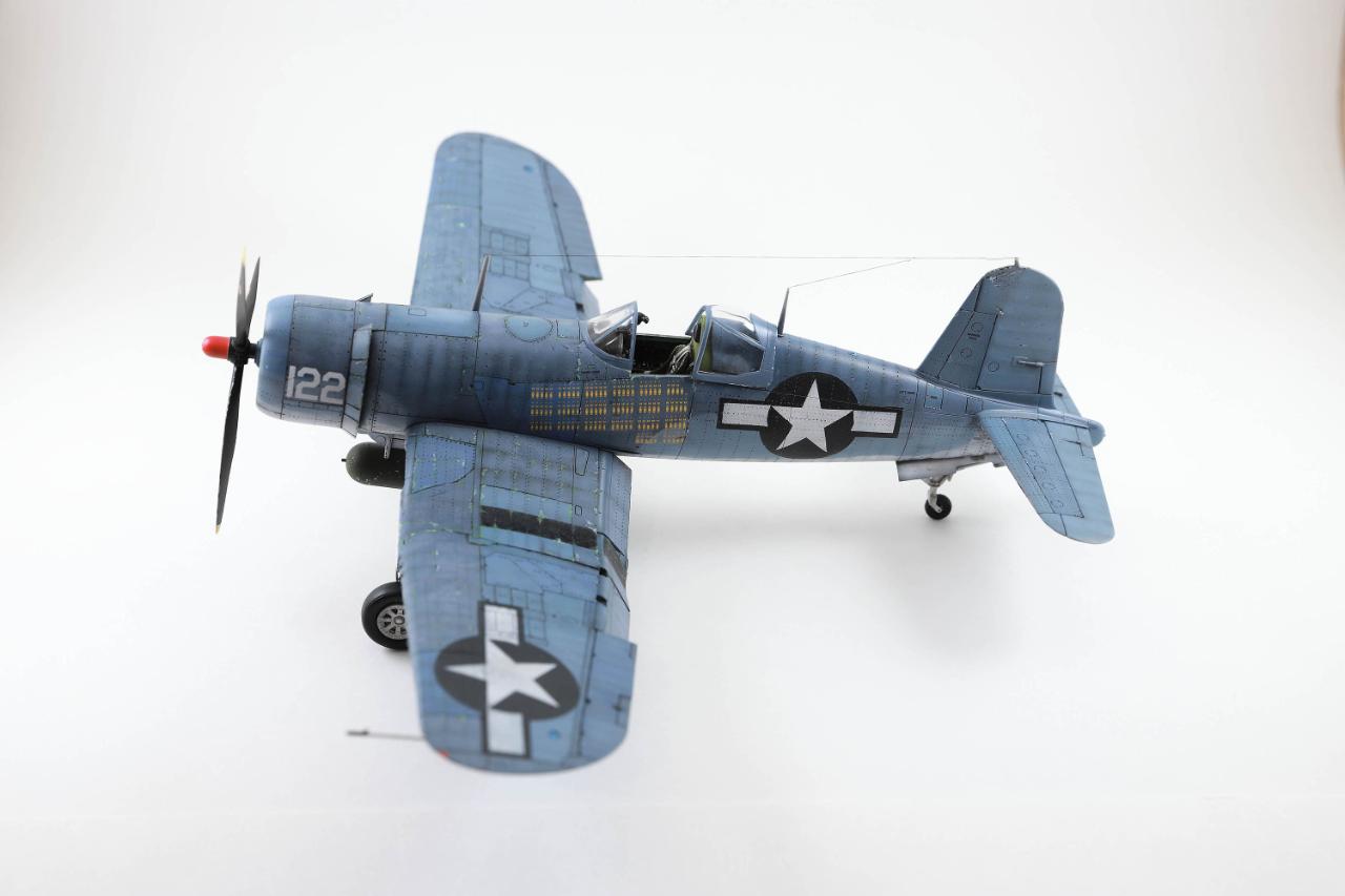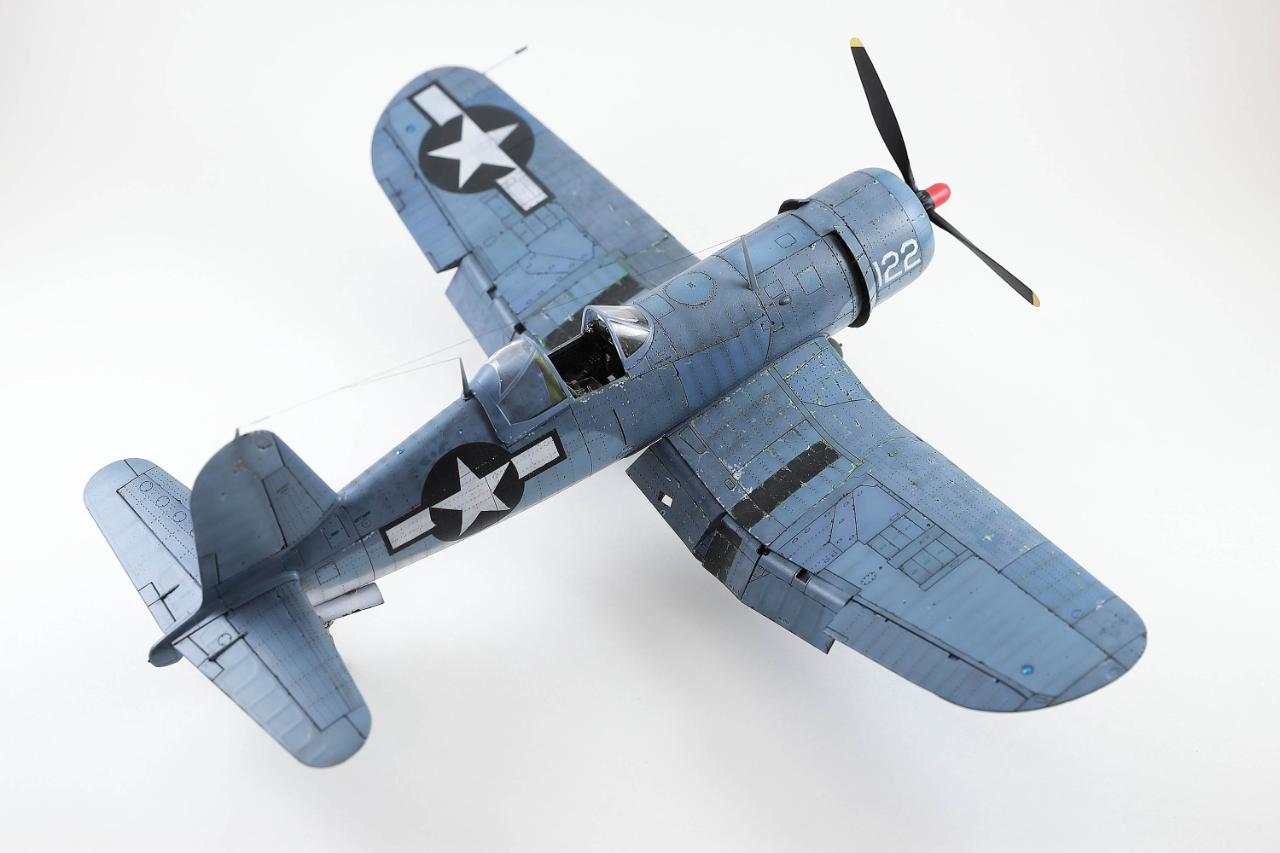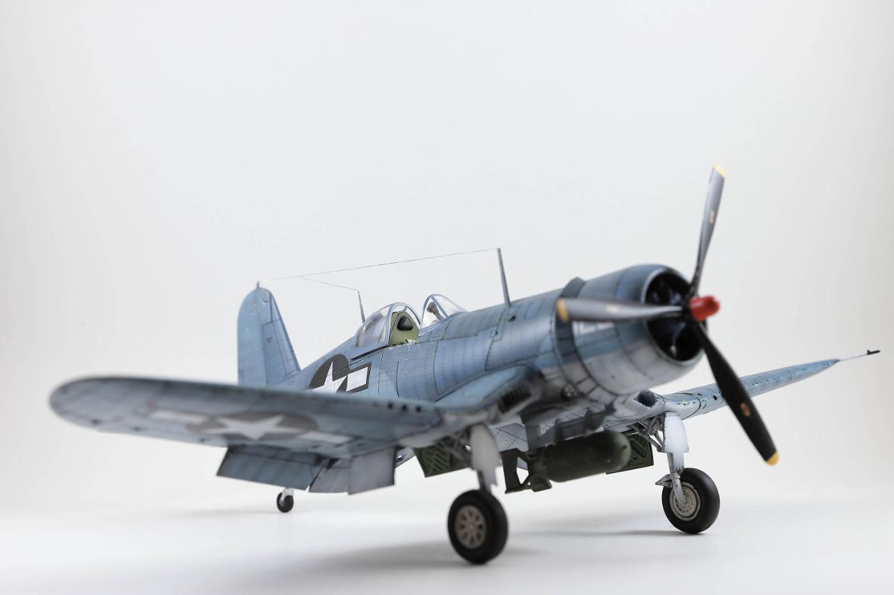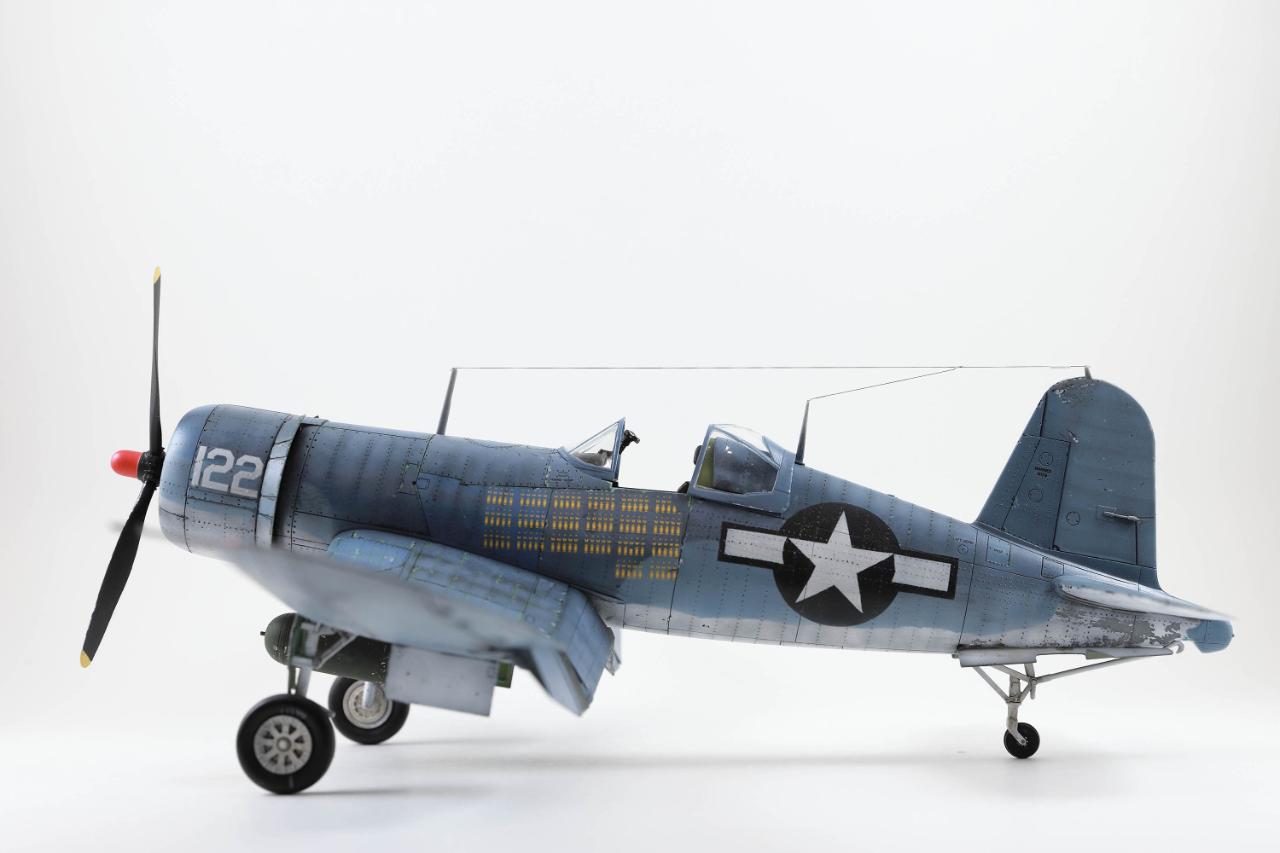 명품킷으로 알려진 타미야 커세어입니다. 리벳과 시트벨트만 추가하고 나머지는 스트레이트 빌딩으로 마무리했습니다. 초기형과 중기형 중간톤으로 도색하고 국적마크는 스텐실로 마무리했습니다. 치핑은 지나치지 않은 정도로 멈췄는데도 연습이 한참 더 필요해보입니다.