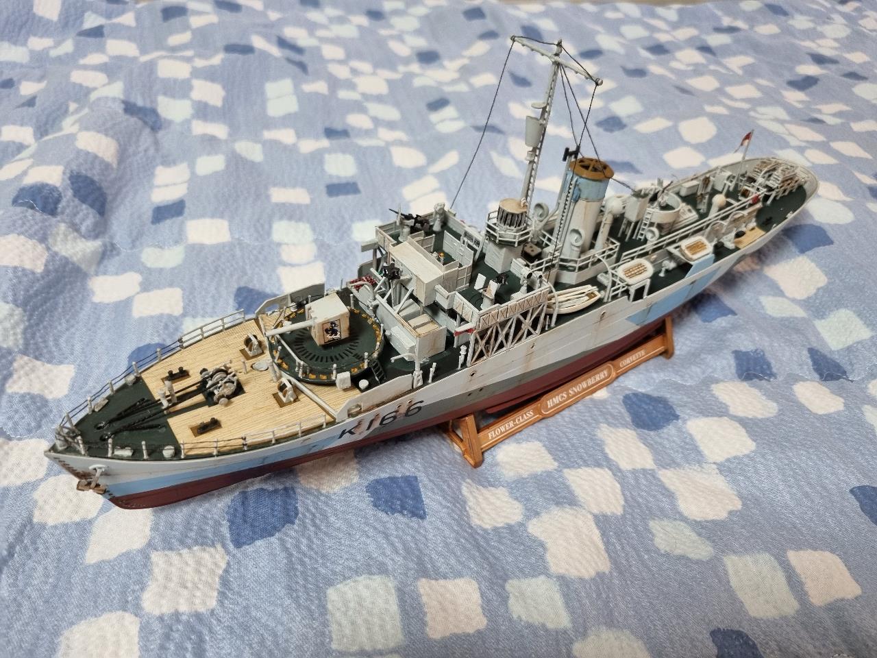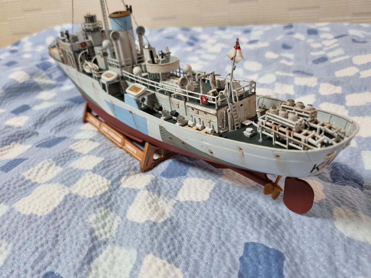 1/144 Revell H.M.S Snowberry를 완성했습니다. 스트레이트에 목갑판만 얻어 놨습니다. 그래도 크기 때문인지 뽀대는 납니다. 도색은 군제락카 지정도색에 녹슬은 워싱느낌을 좀 살려봤습니다. 제작기는 더워서 후딱 만든다고 사진을 못 찍었네요. 암튼 도색완료후 GSI 크레오스 수성 무광마감제로 마무리했습니다.