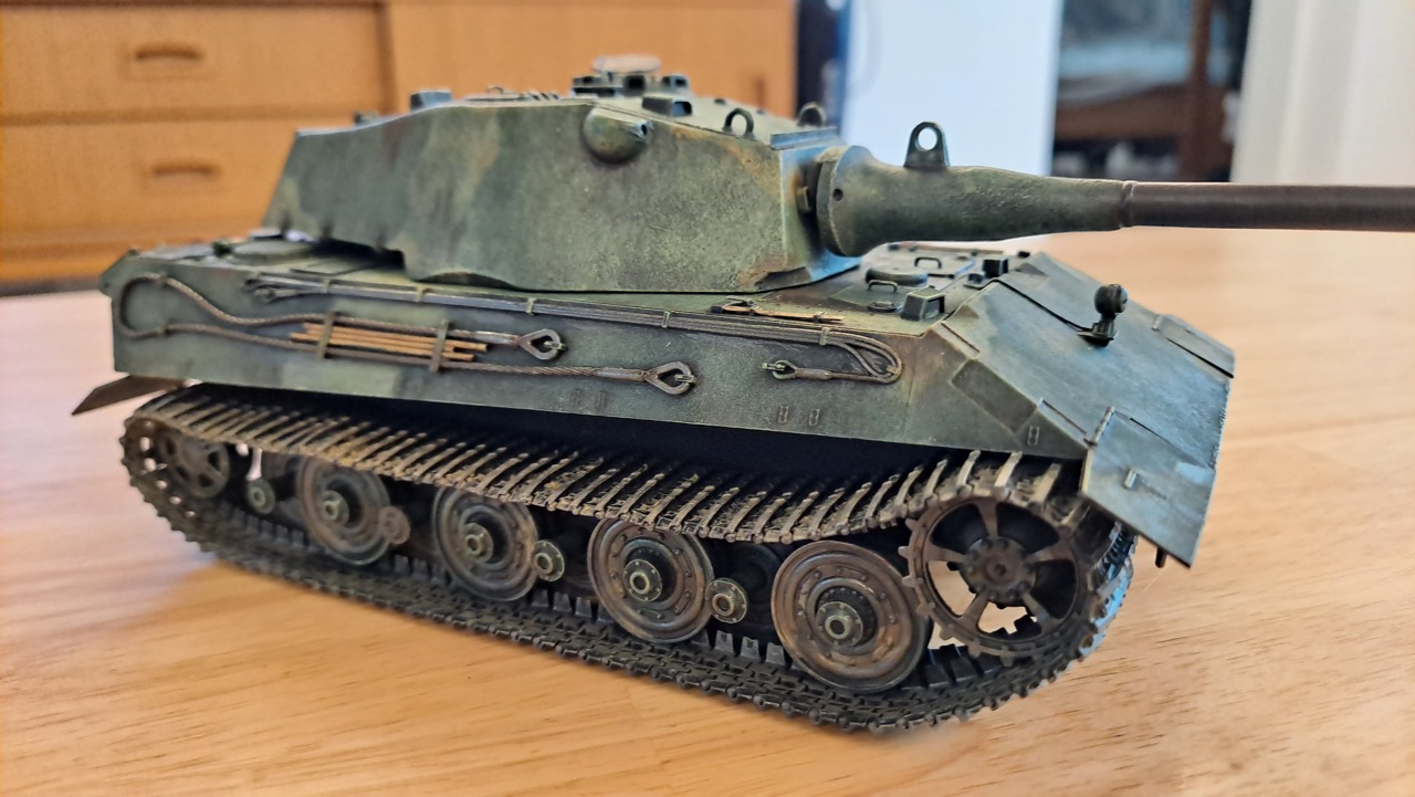 모델컬렉트 E-75를 베이스로 주포를 (105mm?) 크게하고 카운터 웨이트 겸 대형화된 포탄 수용을 위해 포탑을 연장해주었습니다. 트랙은 후리울 티이거2 후기형으로 바꿔주었습니다. 자칭 E-75B라고 해보았습니다.