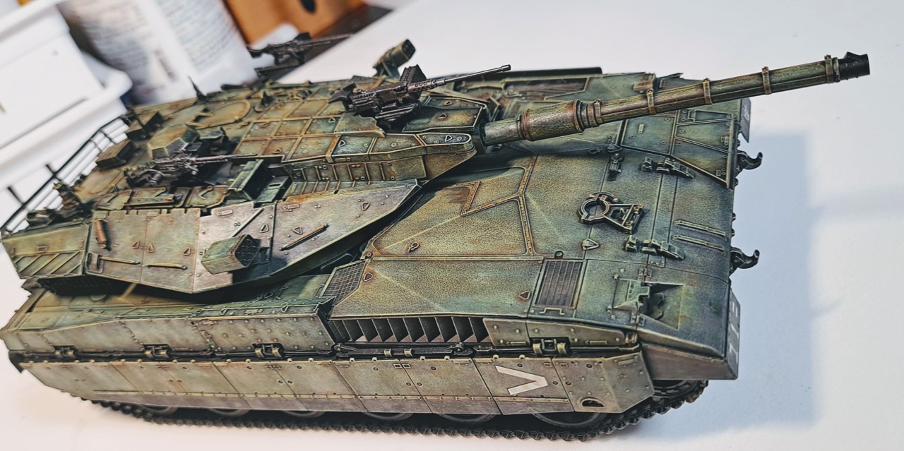 타콤의 메르카바2D입니다. 아크릴 블랙으로 프라이머를 한 후, 에나멜로 붓도장 하였습니다. 옛날 스타일로 칠해보았습니다. 요즘 기법이나 재료는 아직 배울 부분이 많은 것 같습니다.