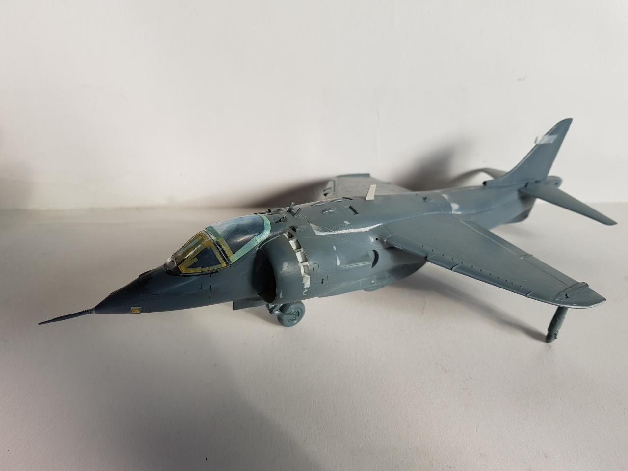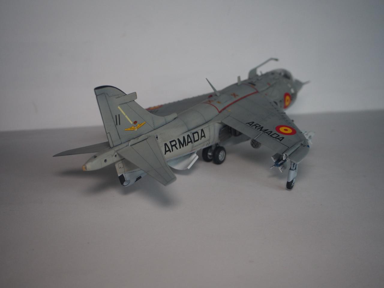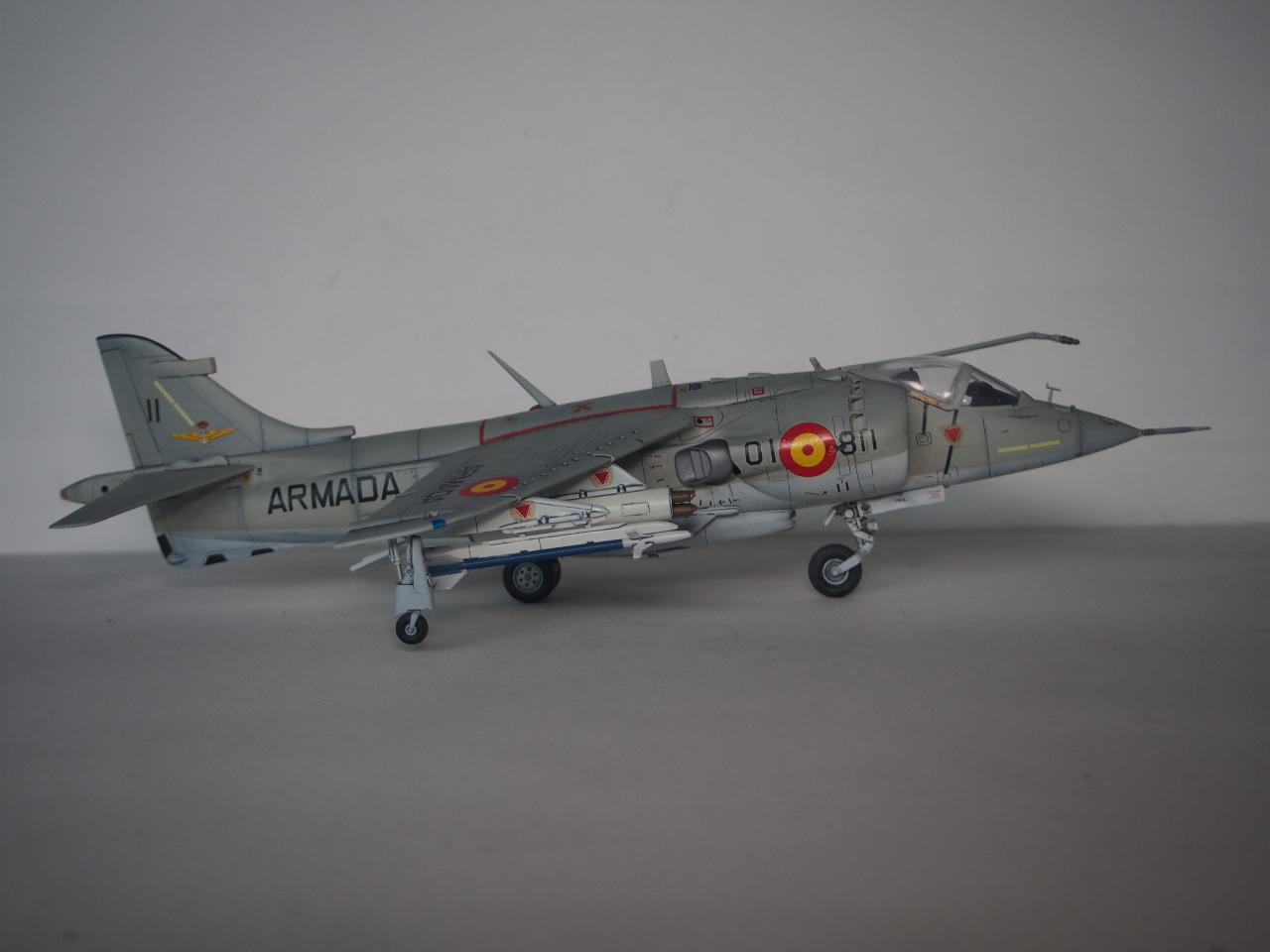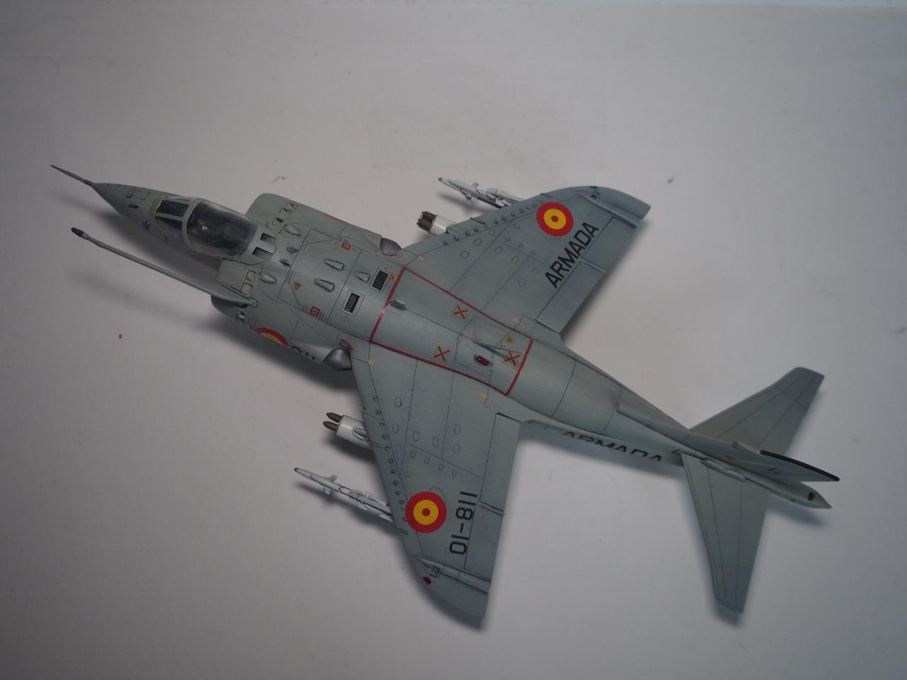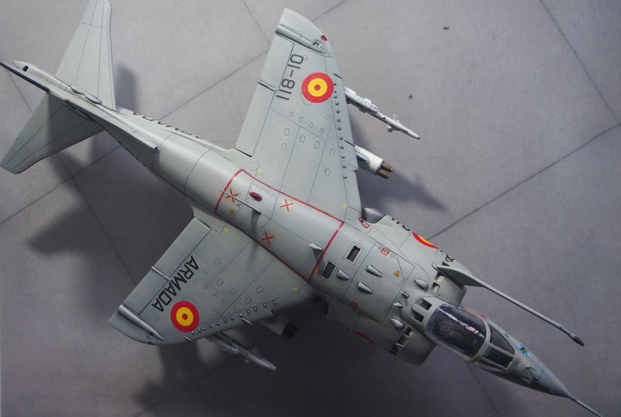패널라인 작업을 하면서 미국 해병대형으로 할까 아님 영국 공군형으로 할까 고민하다가 기왕 작업하는거 그나마 국내에서는 잘 안보이는 스페인 해군형으로 결정하고 거기에 추가되는 기수 전방 측면 카메라, 수직 미익 및 동체 후방 끝단에 장착되는 레이더 경보 수신기를 추가해 주었습니다.