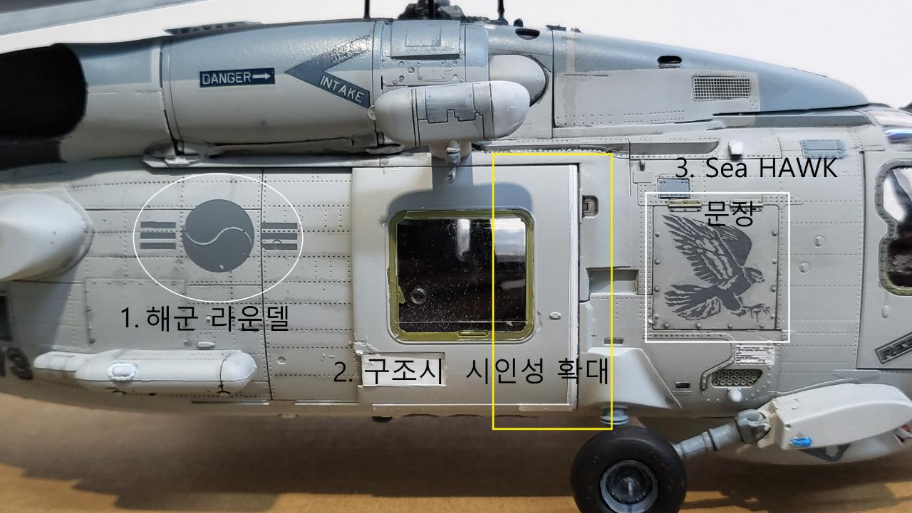 인테리어 파츠와 동체의 조립에는 난이도가 있지만 좋은 제품이었습니다. 그냥 지나칠 부품도 고증에 맞추려 새로이 만든 흔적도 보이고, 헬기 특수임무에 따른 파생형이 많기도 하지만 이제품도 다양한 파츠로 본연의 모습을 담아 냈습니다.