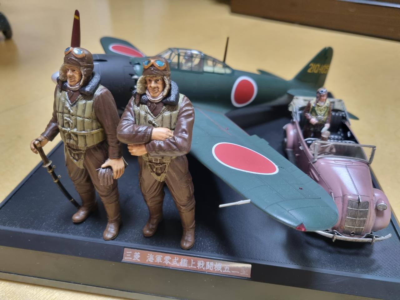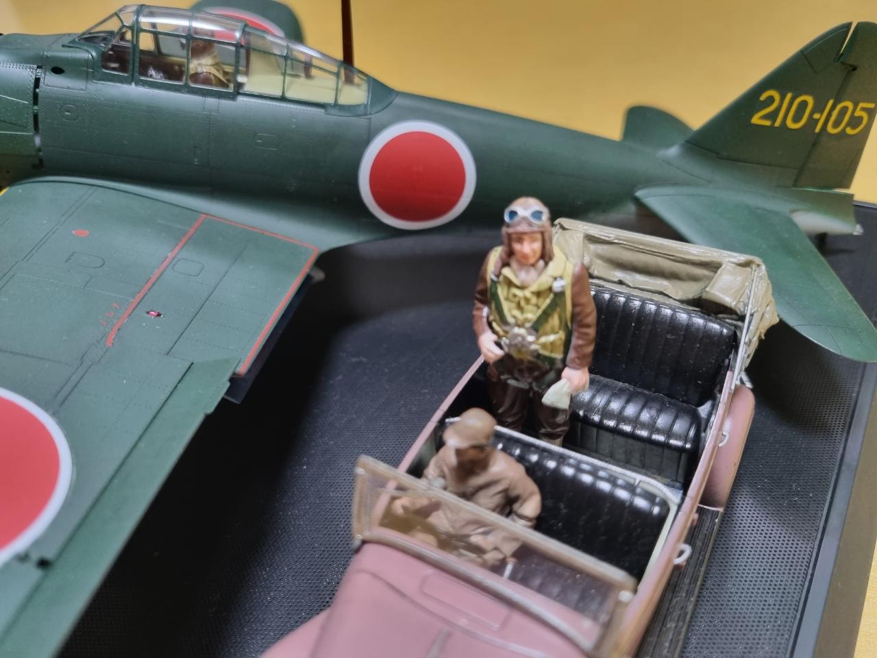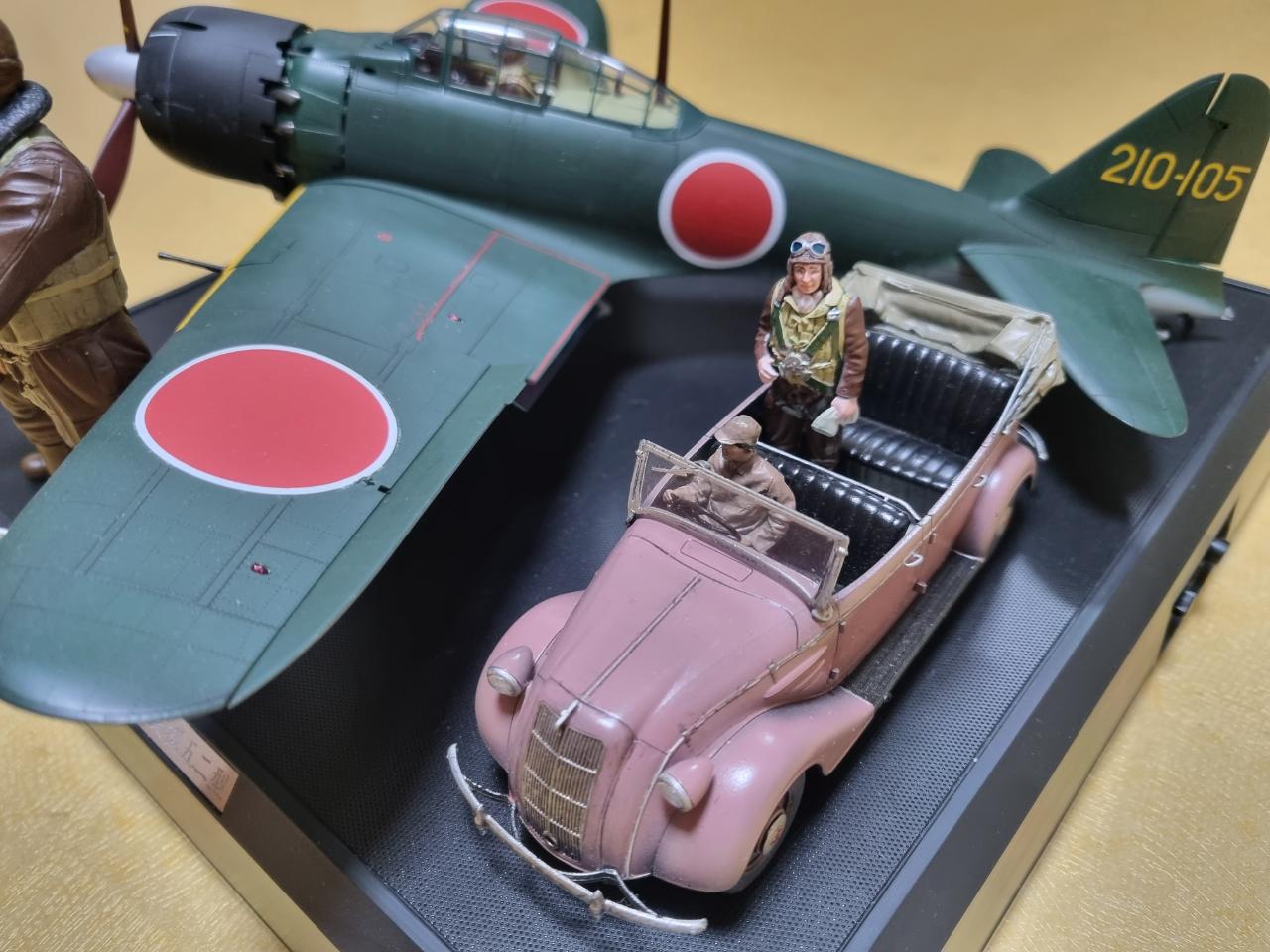 '진주만 공격준비'란 제목으로 타미야 제품들로만 비넷을 완성해 보았습니다. 정면의 인형은 타미야 1/16 사무라이 파일럿이고 그 뒤 비행기는 1/32 타미야 제로센 사운드버젼, 관용차는 1/35 타미야 도요타 차량입니다. 여어가지 악세사리를 추가하니 1/32 비행기만 있는 것보단 나아 보입니다.