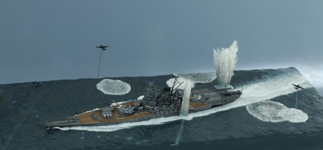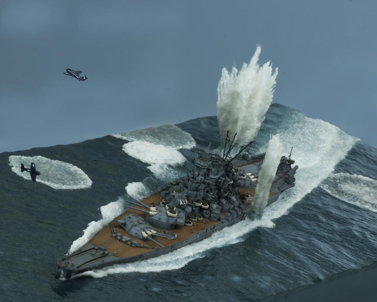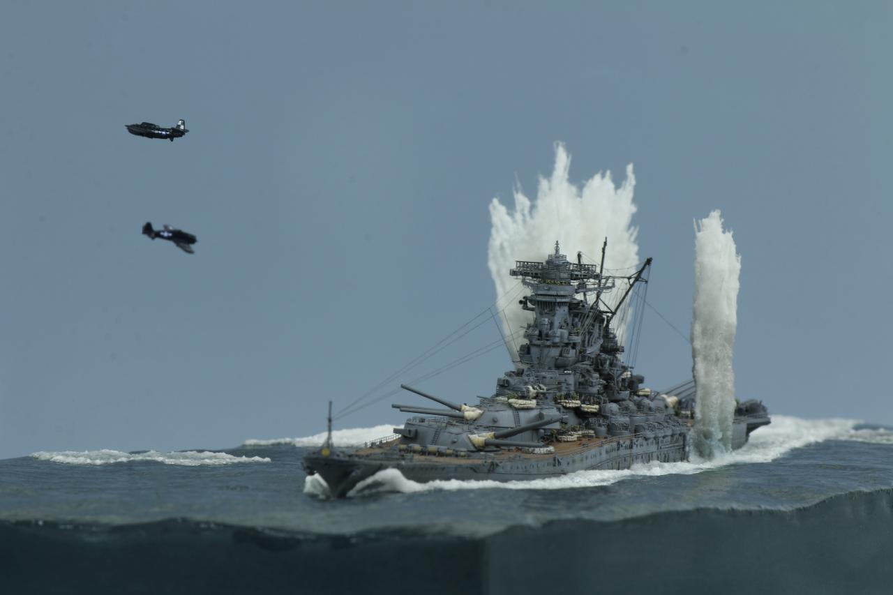 안녕하세요. 오랜작업기간끝에 완성한 폰토스제 야마토입니다. 만들때는 너무 힘들었는데 끝나고보니 고생한 노력을 다 돌려받는 그런 키트입니다. 그냥 배만 만들기 아까워서 공습받고있는 상황을 연출해봤습니다.
