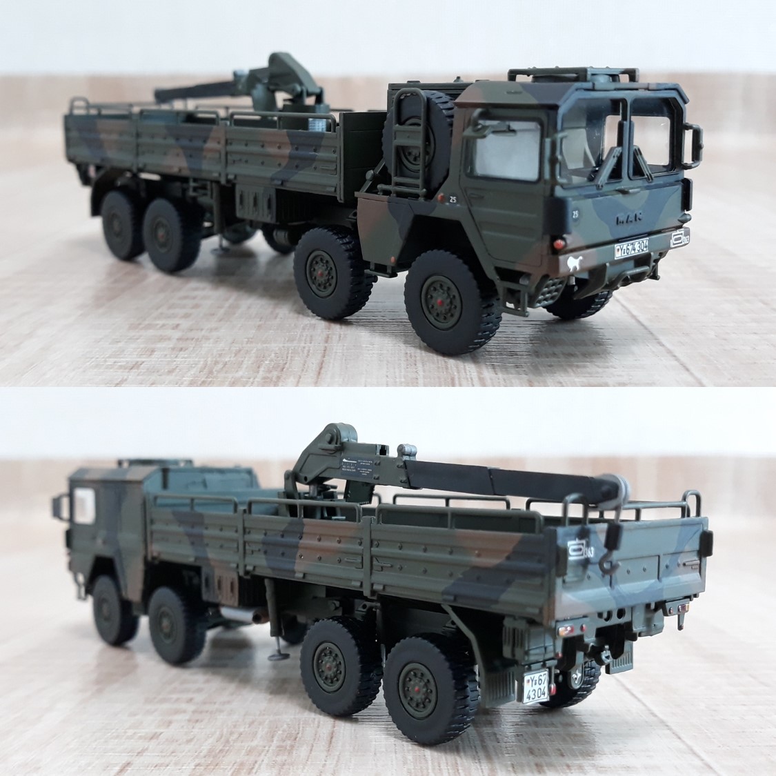 Revell사의 MAN 군용트럭들입니다. 오랜기간이 걸려 드디어 라인업을 갖췄습니다. (10톤, 7톤, 5톤) 디테일과 조립성 모두 양호합니다. 우선 10톤 차량입니다. 8×8이고 크레인이 장착되어 있습니다.