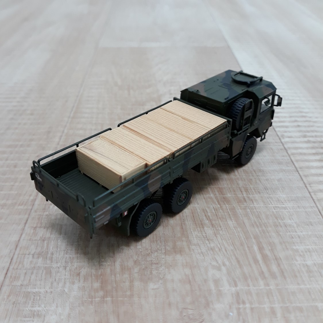 적재함이 허전해서 나무로 화물 흉내를 냈습니다.