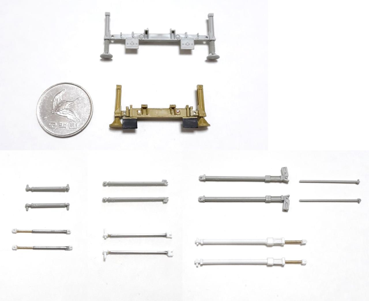 새로 만든 부품들입니다. 위가 키트, 아래가 만든 것들입니다. 재료는 파이프, 판, 황동선을 맞는 크기로 만들었습니다.