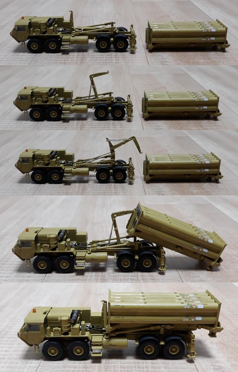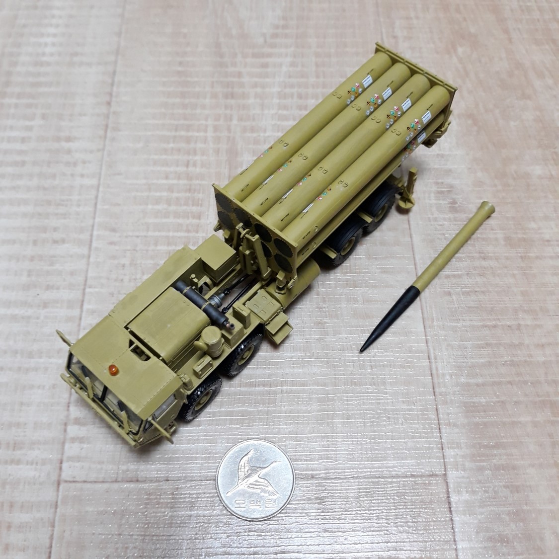 이번 달에 시간 날때마다 심혈을 기울여 만든(개조한) Trumpeter사의 THAAD입니다. 디테일 좋고 조립은 약간의 수정이 필요한 수준입니다. 다만 옥에 티는 캐빈의 와이퍼가 너무 굵다는거와 옆과 뒤의 유리창이 일체로 되어 있어 굴곡이 좀 있습니다.