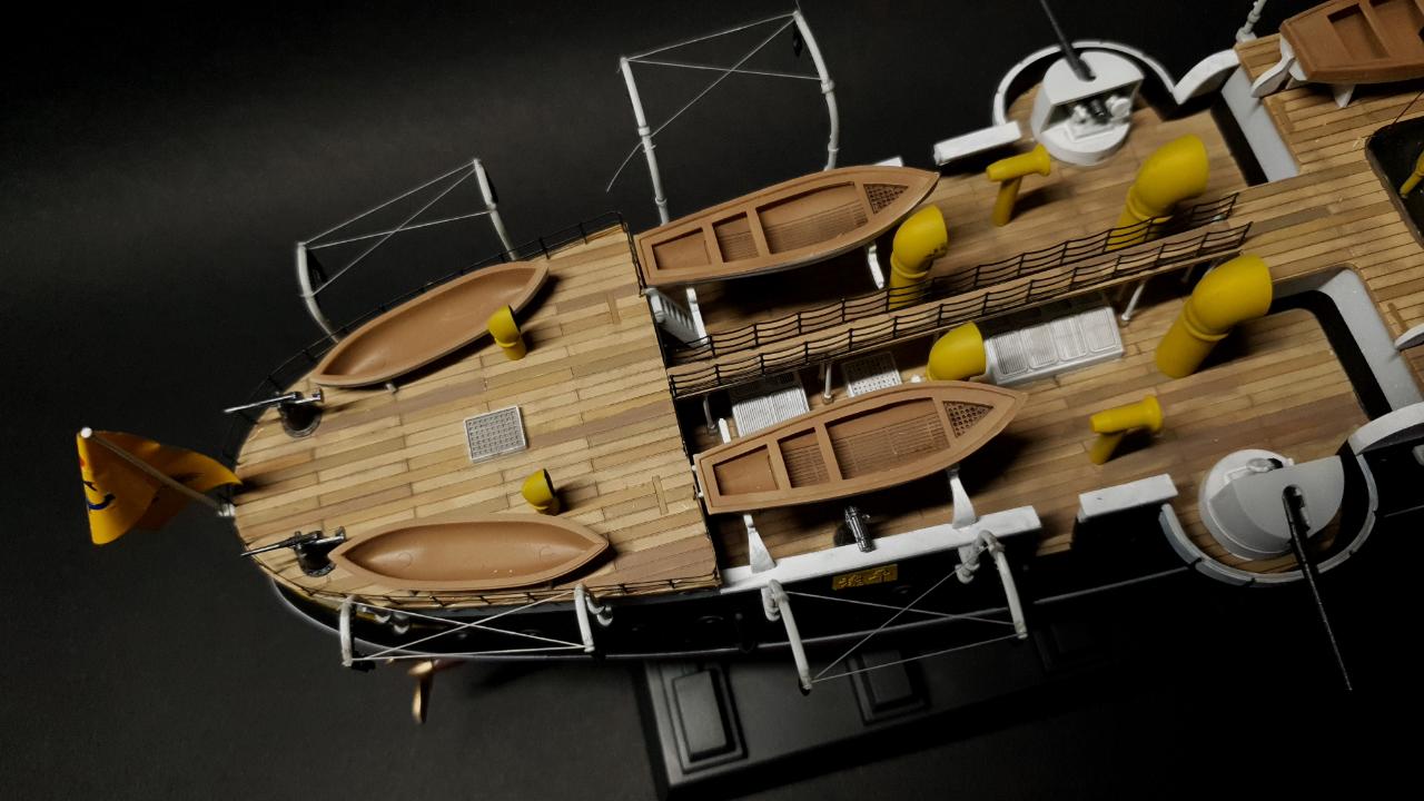 갑판은 길이 방향으로만 홈이 파여있어 폭방향으로 파주고 색깔을 달리해 보았습니다.
