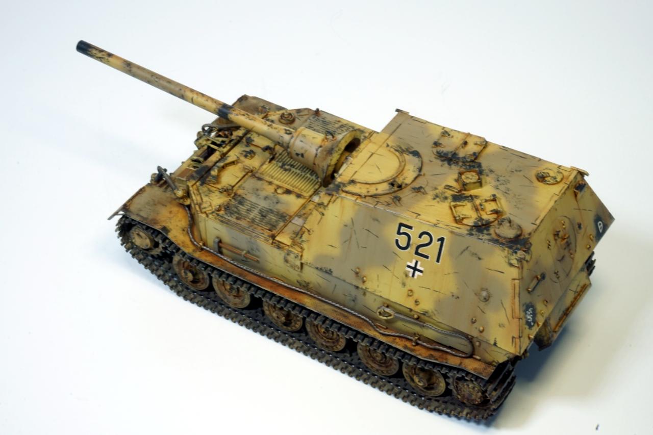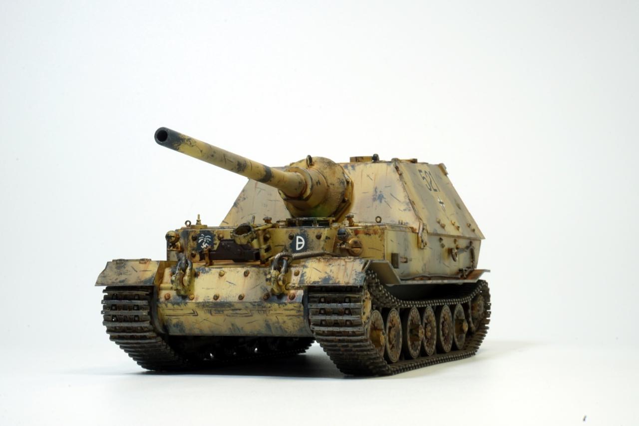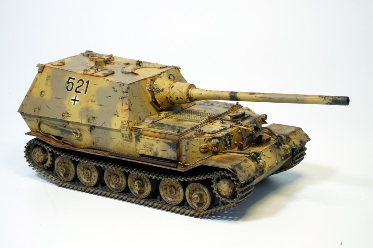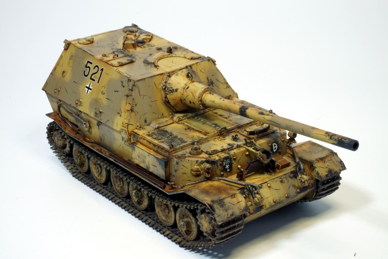 처음부터 아프리카군단 소속을 상정하고 제작하지는 않았습니다. 거대한 차체에 비해 주포가 너무 가냘퍼 보여 야크트티거의 12.8cm짜리 주포로 교체한 것이 화근이었습니다.