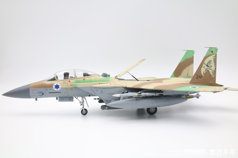 안녕하세요. 이스케이프 소속으로 활동하고 있는 빨간우주라고 합니다. 이번에 GWH사의 F-15I 를 제작하게 되어 사진을 올립니다. 제작하는데 큰 어려움은 없었는데, 다만 위장무늬 색상을 정하는데 조금 애를 먹었습니다. 색깔 감각이 그다지 좋지를 못한 편인데, 그러다보니 초록색 색상을 조색해 보겠다고 하면서 도료를 엄청나게 소모해 버렸습니다. ㅠㅠ 그런데도 결국 만들어낸 색상 역시 그다지 맘에 들지는 않는 상태이구요. 원래 저는 제조사에서 지정해 주는 지정색으로 군말없이 도색하는 편인데, 이번에는 뭔 바람으로 조색을 한 번 해보겠다고 했다가 낭패를 보았네요. ㅎㅎ 암튼 괜찮은 손 맛에 디테일도 괜찮은 킷입니다. 국내에서는 구하기 어렵지만, 알리 같은 곳에는 지금도 재고가 충분히 있는 것 같으니 한 번 쯤 구하셔서 제작해보시는 것도 좋을 것 같습니다.