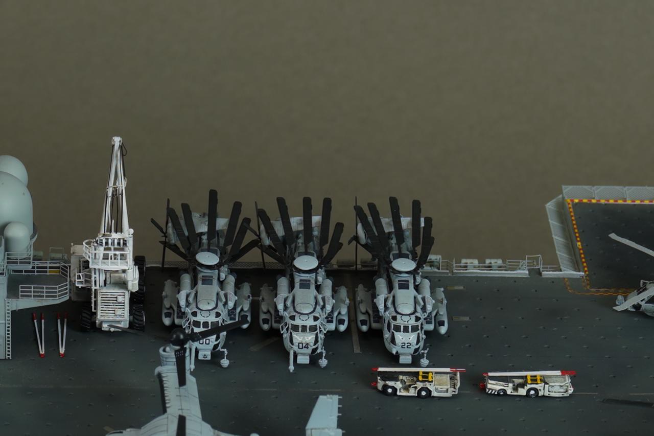 2년전에 배만 완성시켜놓고 질질끌다가 헬기랑 갑판차량을 올려주고 빨리 마무리했습니다. HS모델의 오스프리와 슈퍼스탤리온,갑판차량까지 모두 올려주었습니다.