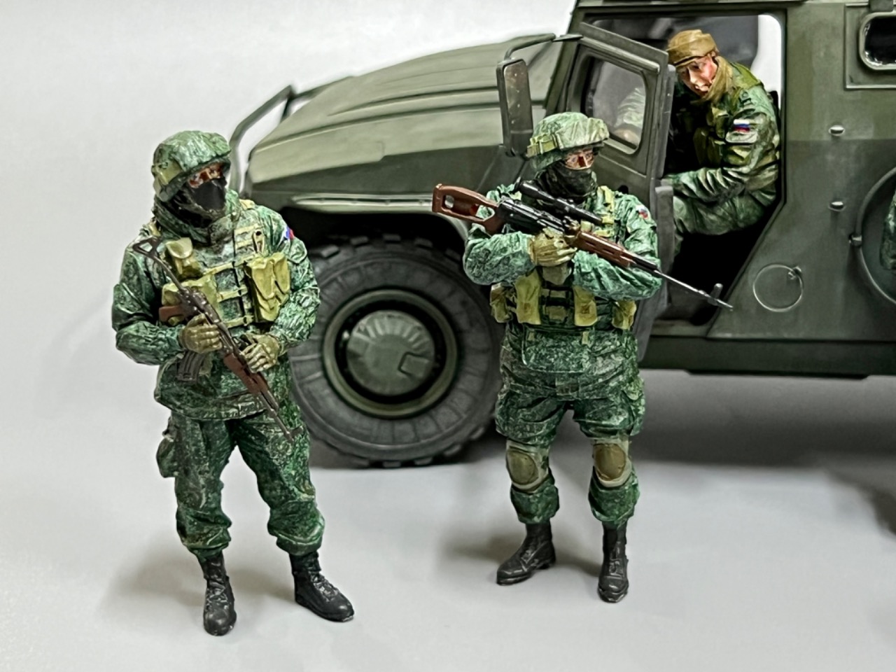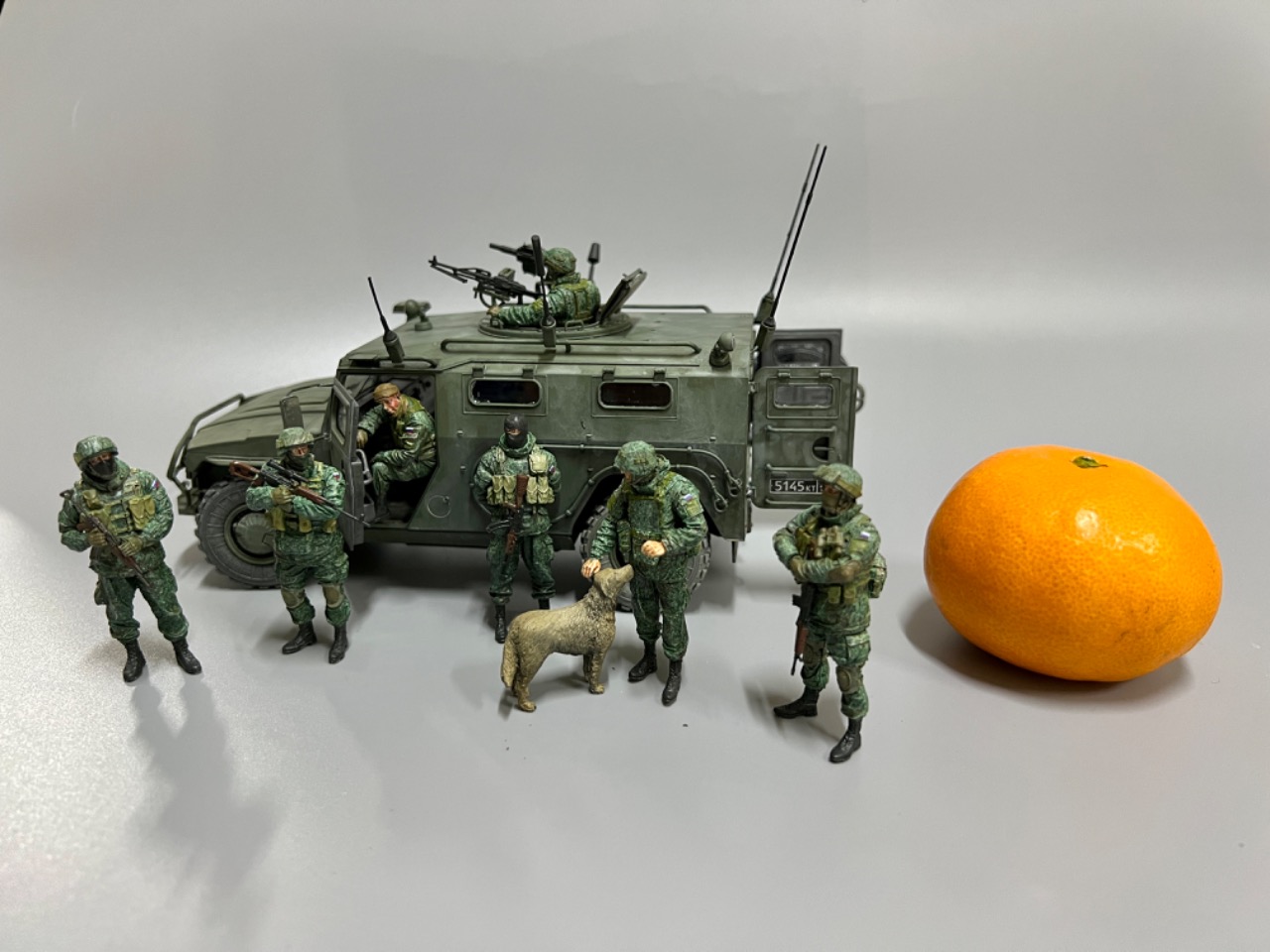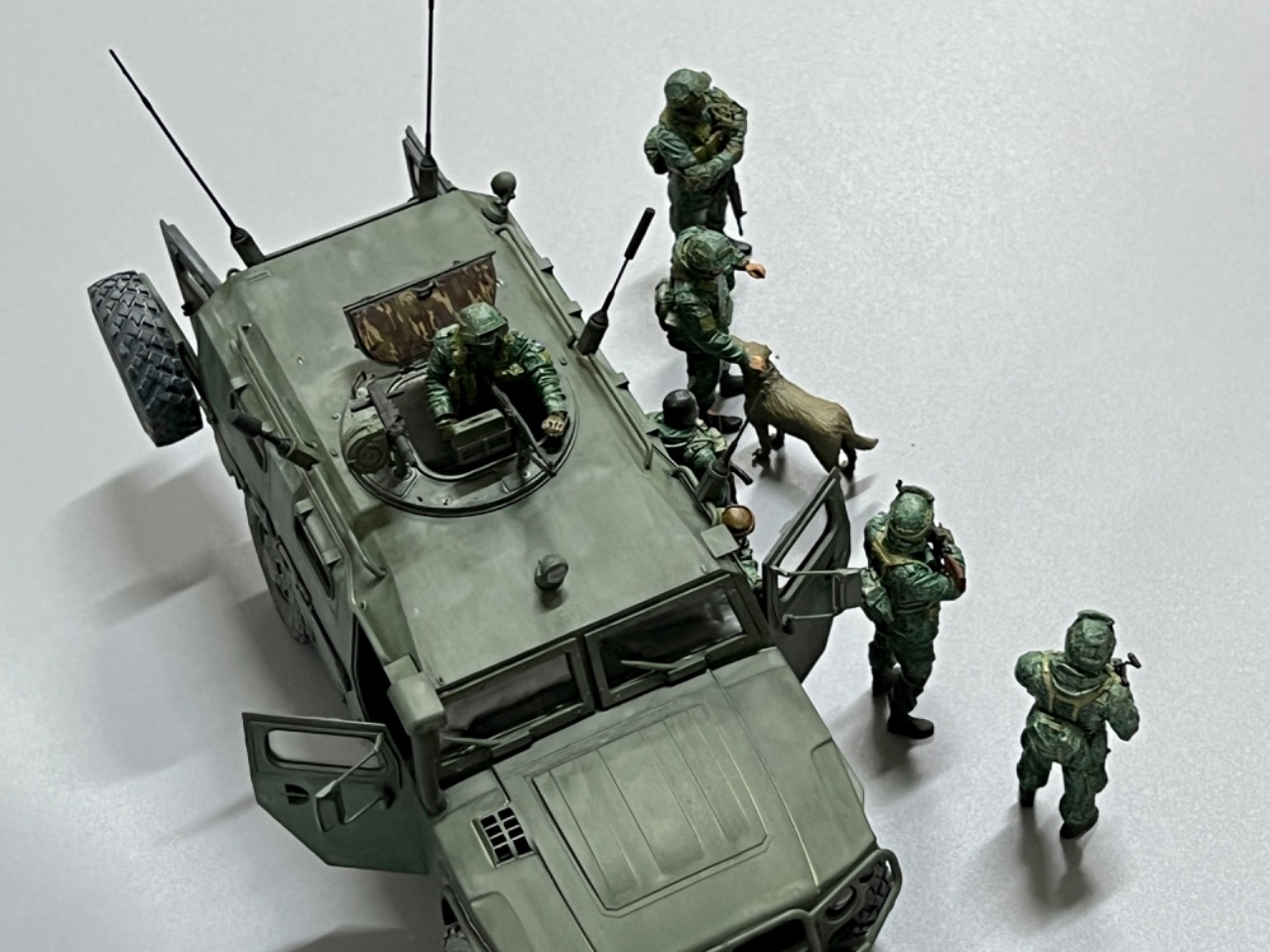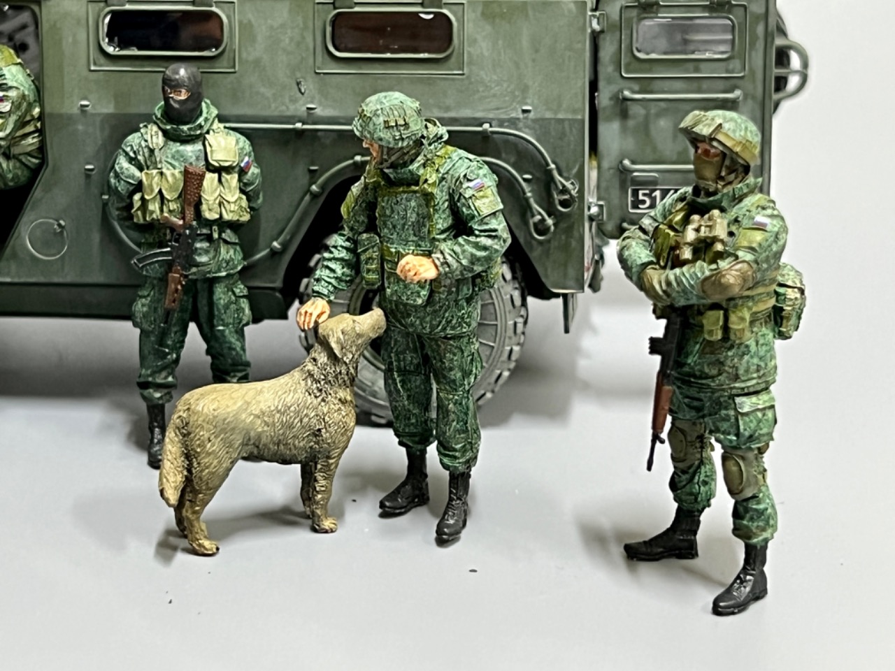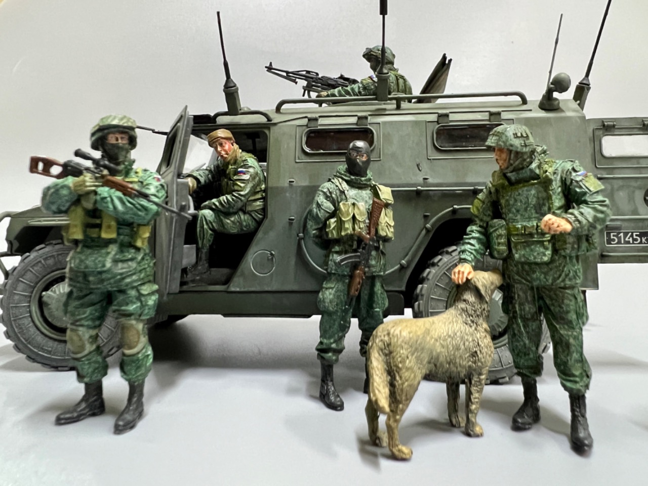 강아지와 놀고 있는 러시아 군인들/ 타이거 다목적차량