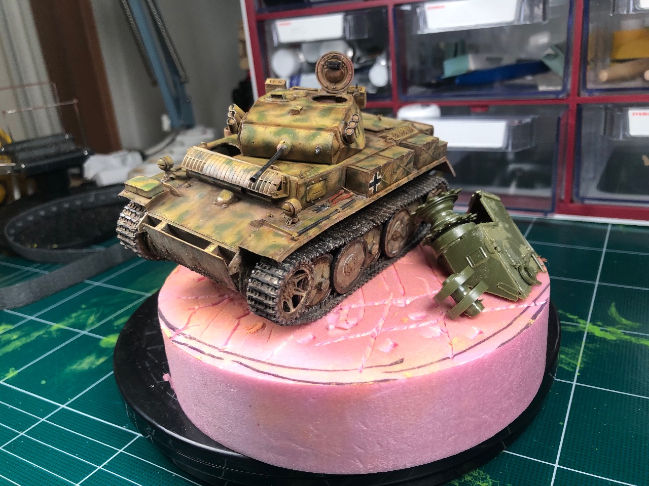탱크만 있으면 허전한 감이 있어서 비네트 만들어 줄려고 구도 잡았습니다. 비네트는 신경 쓸게 많은거 같네요 얻어온 폐품들 썰어서 배치 했는데 시간날대 공터 가서 흙이나 자갈좀 퍼와야 겠네요