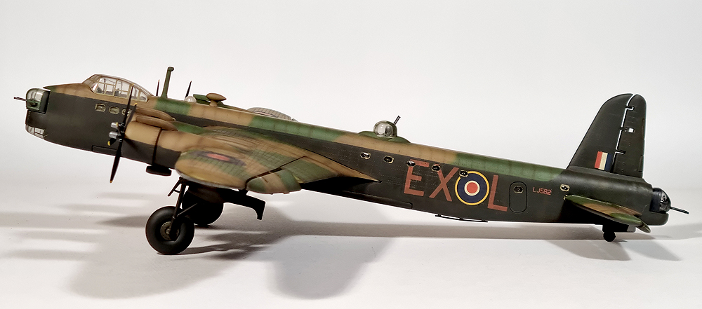 킷트는 1966년에 첫 발매되었고, 저는 1992년판을 구입하여 만들었습니다. 매달아 두었다가 한번 떨어져서 크게 파손되었는데 자세히 보시면 금이 가 있거나 어긋난 곳을 찾으실 수도 있습니다. 플라스틱도 오래되면 냉장고에 넣어 두었던 쵸콜렛 같이 딱딱해지는 것 같습니다. 프로펠러 4개와 후미 기총포탑은 다른 킷트를 만들고 남은 것으로 교체하였습니다.
