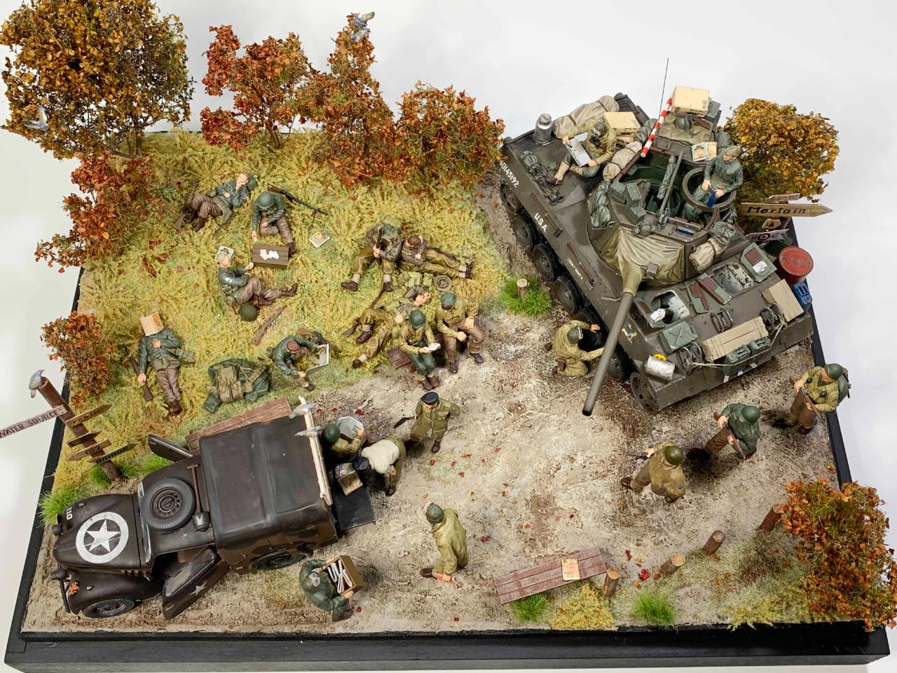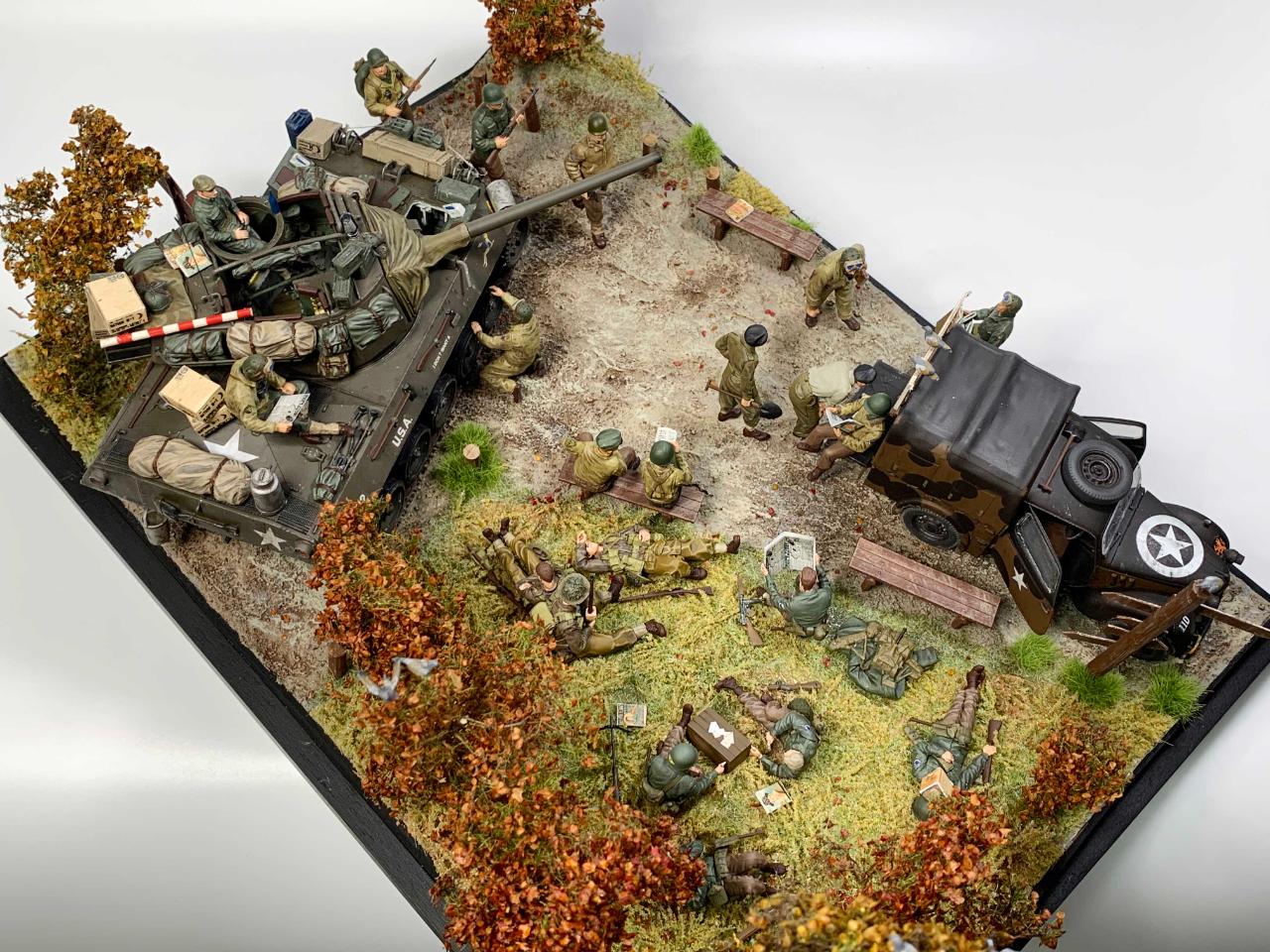 제작에 사용된 제품들은 아카데미 m18헬켓, 타미야 10HP, 그리고 미니아트, 타미야 등의 인형들을 활용하였습니다.