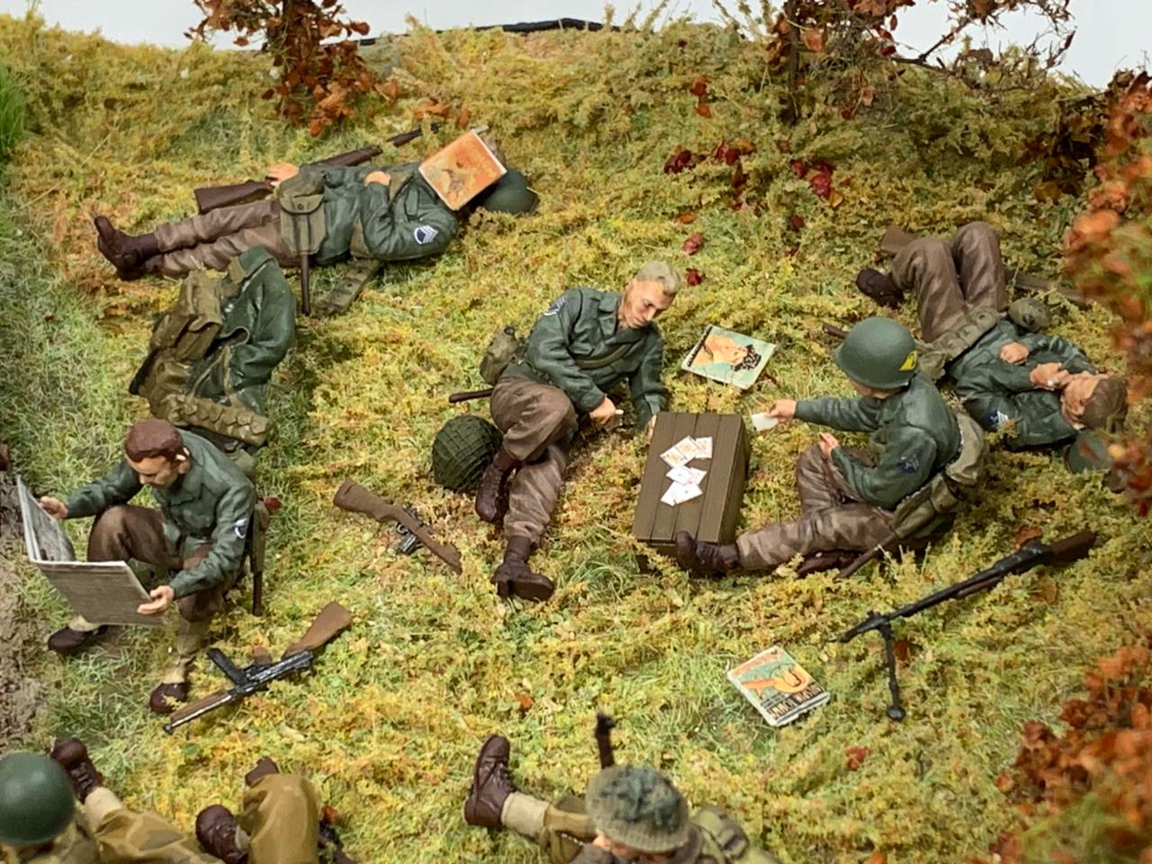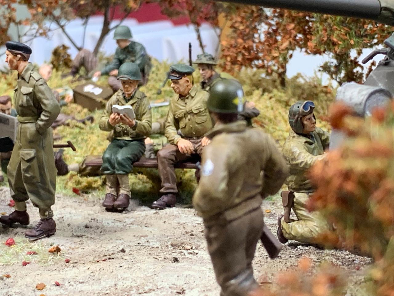유럽전선은 다양한 국가들이 대치하였던 전장이었고 작전은 각자의 지휘체계에 따라 진행되었겠지만 휴게하는 공간만큼은 평화롭게 함께하며 쉬는 모습을 그려내면 어떠할까 라는 생각으로 구상하고 표현하였습니다.