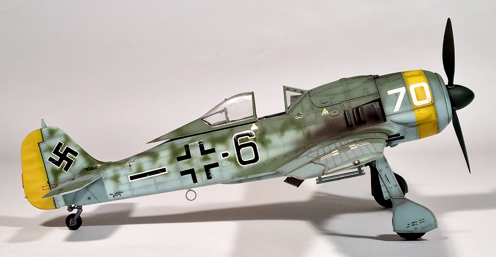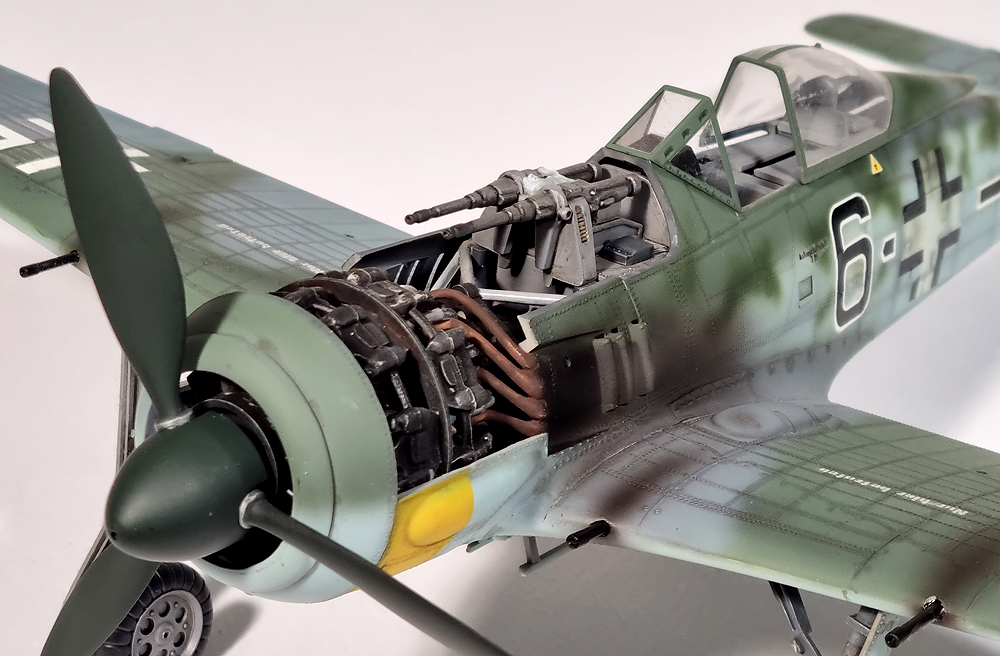 1970년대에 처음 출시되어 2000년대에 하세가와에서 새로운 Fw 190이 나오기 전까지, 30년간 모델러들로부터 많은 사랑을 받던 킷트입니다. 플러스몰드의 촘촘한 리벳과 마이너스 몰드의 패널라인이 적절한 조화를 이루고 있습니다.
