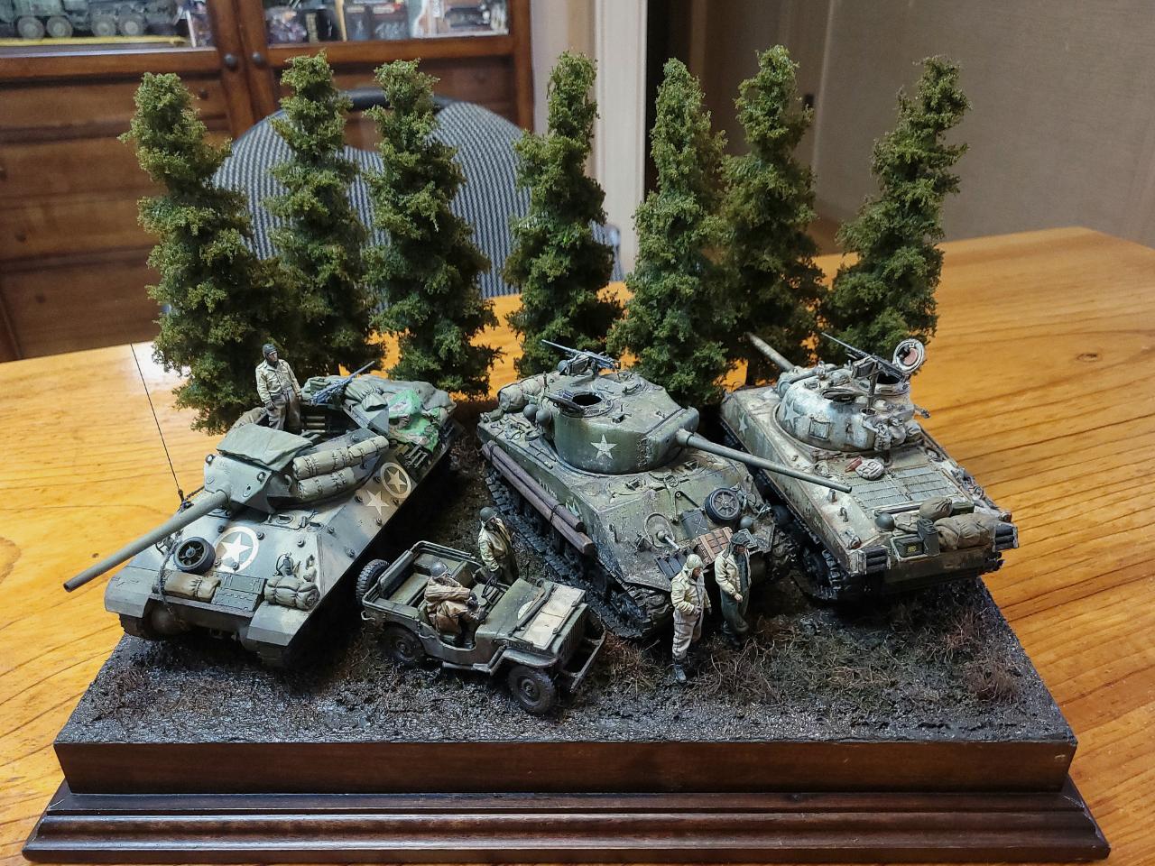 올해가 가기전 벌지전투를 배경으로 디오라마 한점을 완성하였습니다. 오래전 구매했던 완성품 전차들을 이용하여 눈이 수북히 쌓인 아르헨지역의 전장 분위기를 내는데 중점을 두고 작업하였습니다. 감사합니다.