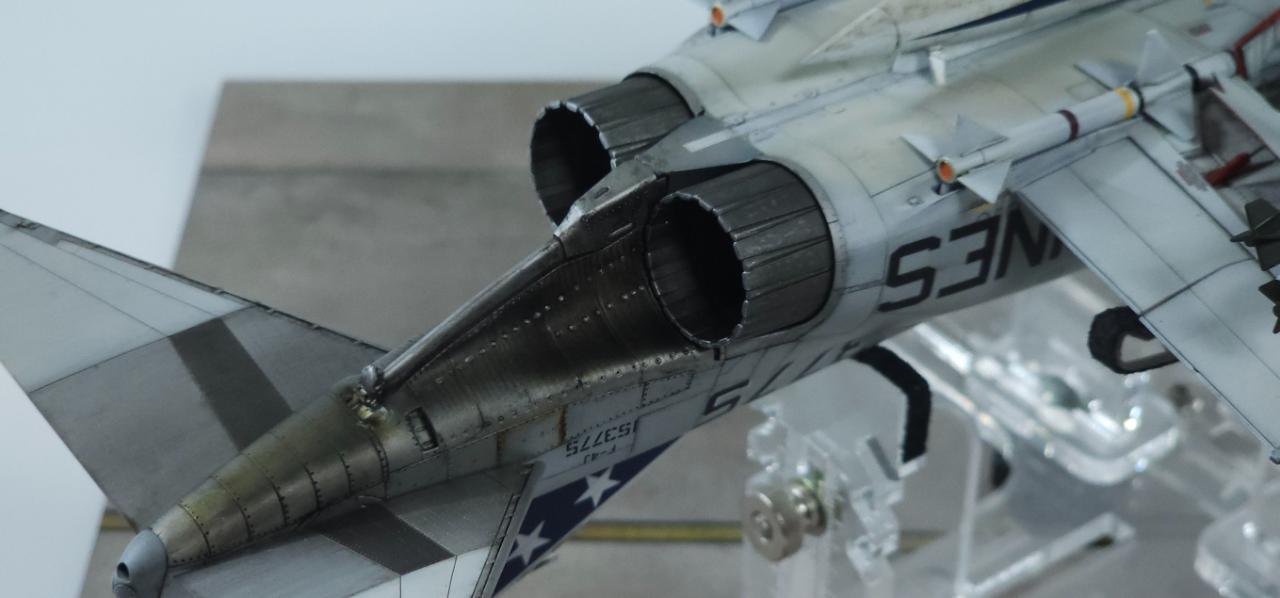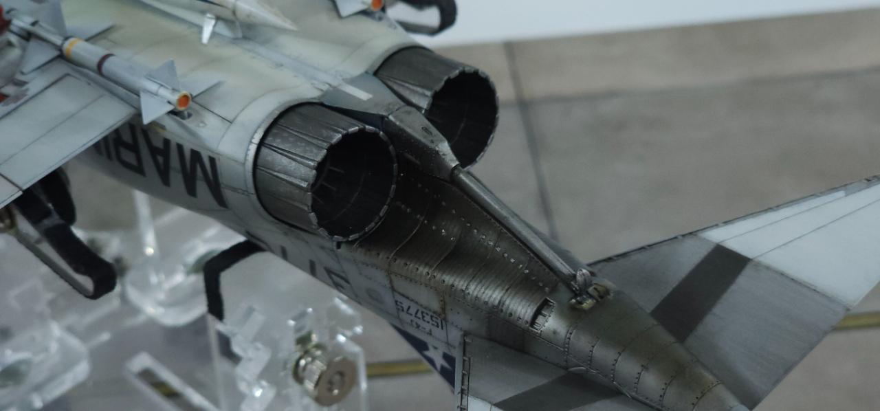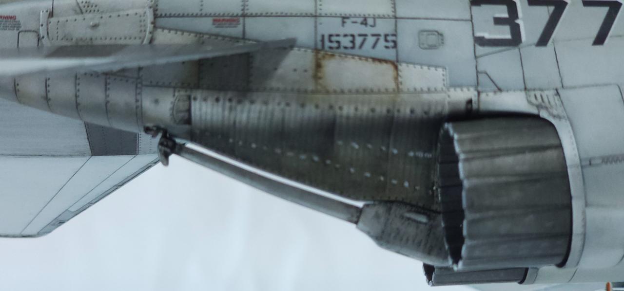 엔진 부위는 많이 신경 쓴 부분입니다. 팬톰 특유의 규칙적이면서 불규칙적인 변색 효과를 주기 위해 기본 도색, 클리어 도료로 색감 변화, 워싱, 유화 등을 통해 변색효과를 줬습니다.