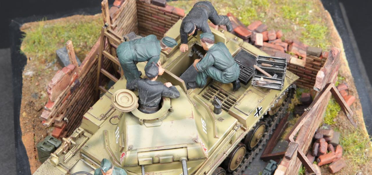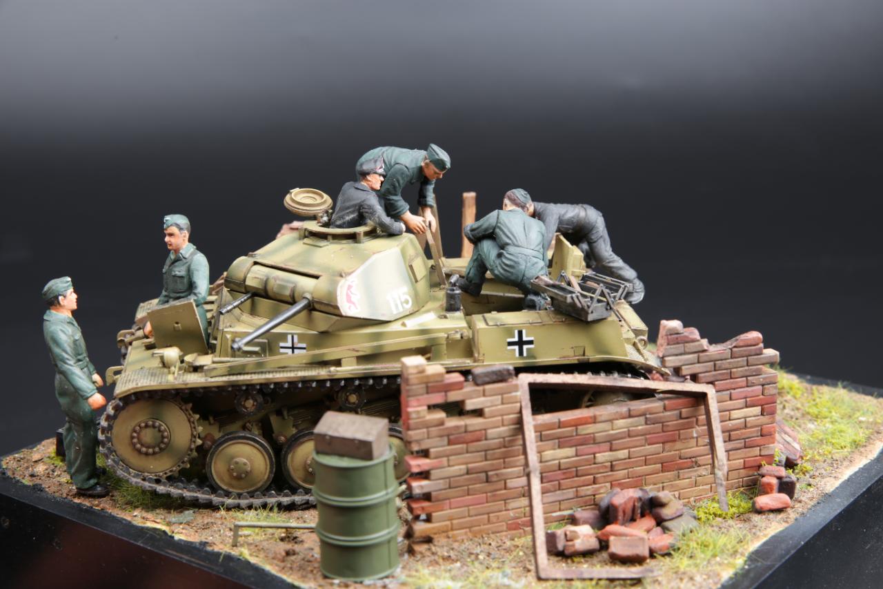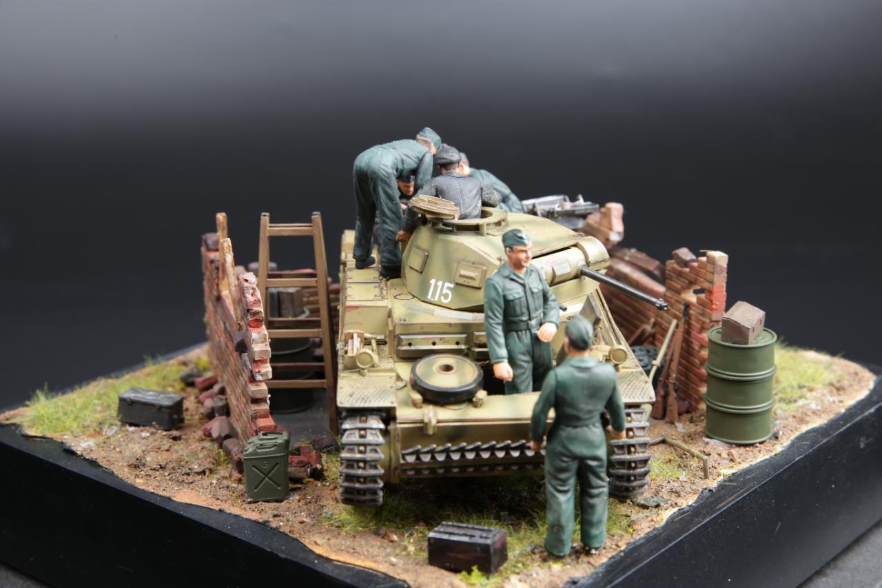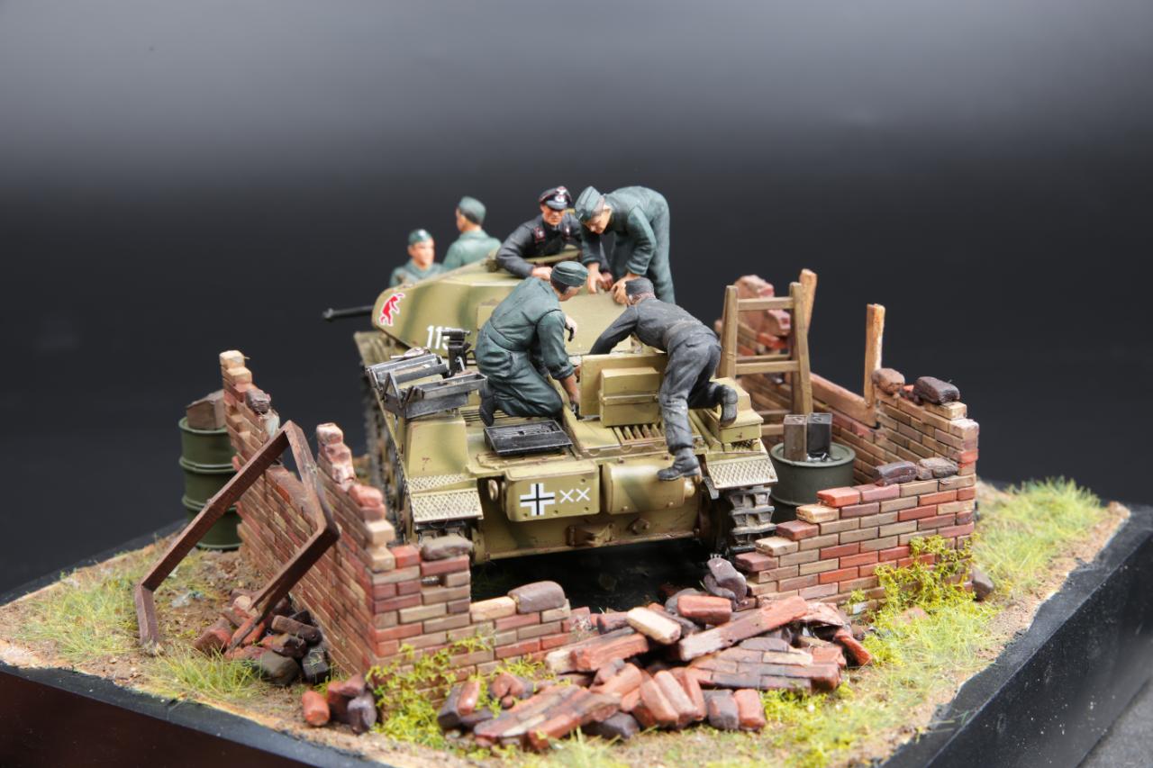 타미야 German Tank Engine Maintenance Crew Set와 Panzer Kampfwagen II Ausf.F/G, FAMO와 아카데미 'Hetzer'에 있는 피규어를 사용하였습니다. 벽돌은 이타렐리 제품을 사용하였고 종이 찰흙과 석고등으로 벽돌을 표현했습니다.