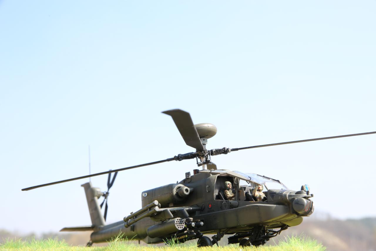 안녕하세요. 지난번 아카데미과학의 1/35 35 AH-64A ANG “South Carolina”제작하였고 이번엔 1/48 스케일의 Boeing AH-64D Longbow Apache를 제작하였습니다. 1/35 사이즈보다 훨씬 작은 것 같지만 막상 조립을 해보니 각 부품의 정밀도가 1/35 보다 뛰어난 듯 합니다. 아파치에 탑승한 조종사는 500D키트에 들어있는 조종사를 사용하였습니다. 베이스를 만들어 구멍을 내고 모터에서 이어지는 전선을 처리하였습니다.