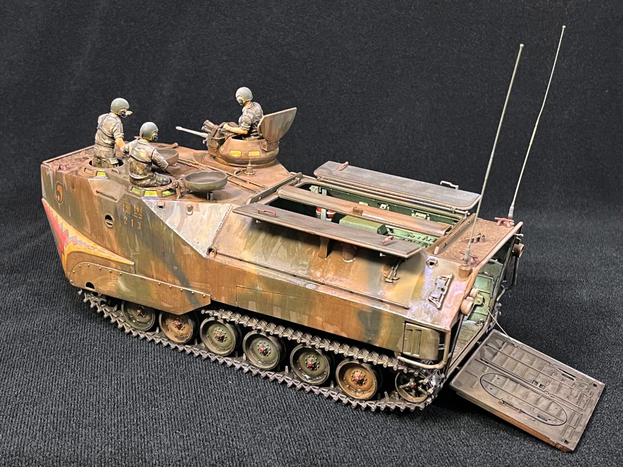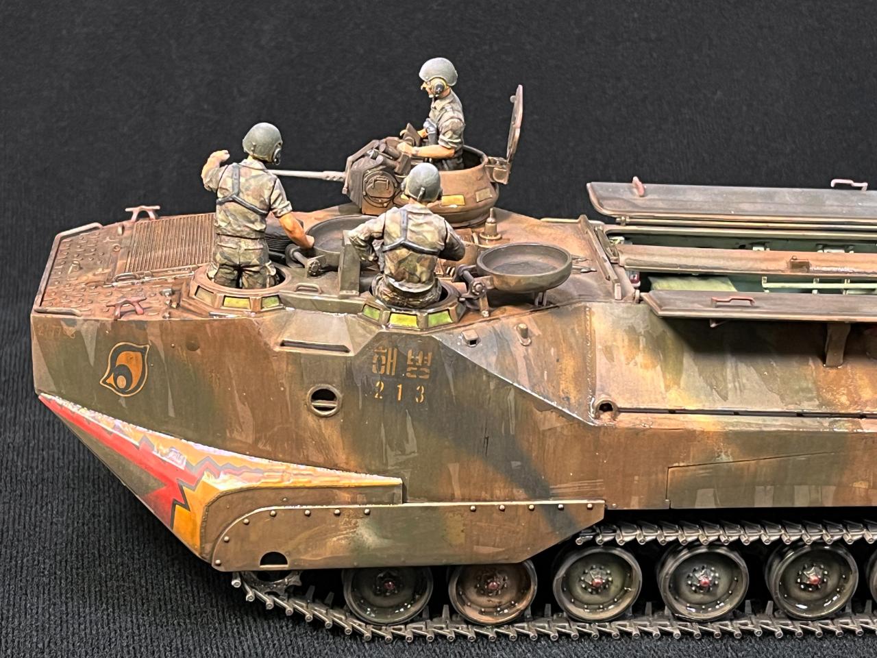 HobbyBoss의 데칼은 아카데미과학의 동형 키트와 동일한 차량번호를 사용하고 있는데, 아카데미과학의 설명서에는 이 213번 차량이 1984년 국군의 날 행사에 사용된 차량이라는 설명이 있었습니다. 해병대 출신의 지인의 설명으로는 [해병1사단 상장대대 2중대 1소대 3번차량]을 의미한다고 합니다.