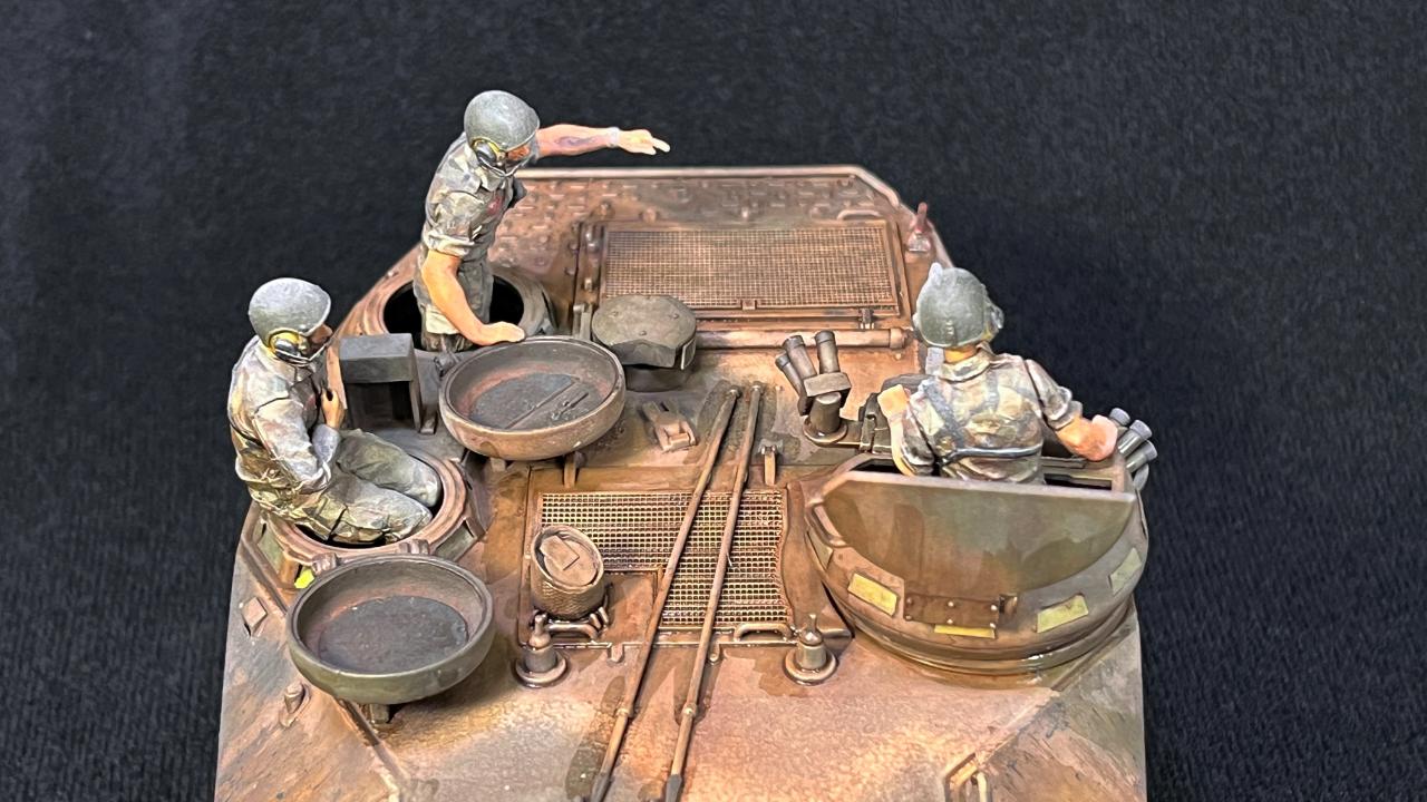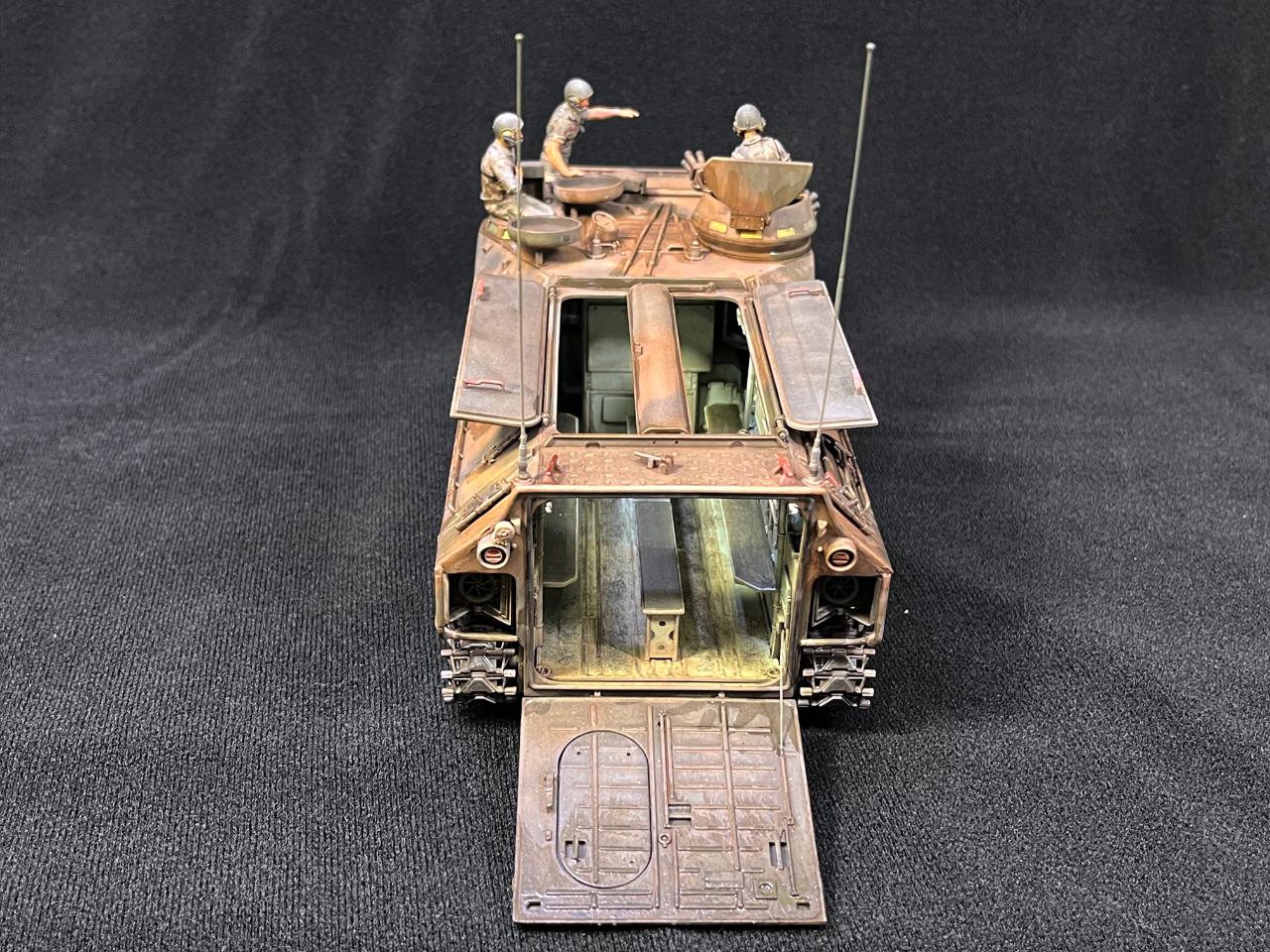 승무원 해치 근처에도 두개의 안테나포스트가 있는데, 운영되는 차량들 중에 지휘차는 총 4개의 안테나를 달고있는 경우도 있고 어떤 경우는 앞쪽 2개에만 안테나를 달고 있는 경우가 있더라구요. 저는 자료사진을 보다가 뒤쪽 두개에만 달려있는 것이 좋아보여서 뒷쪽에만 안테나를 달아주었습니다.
