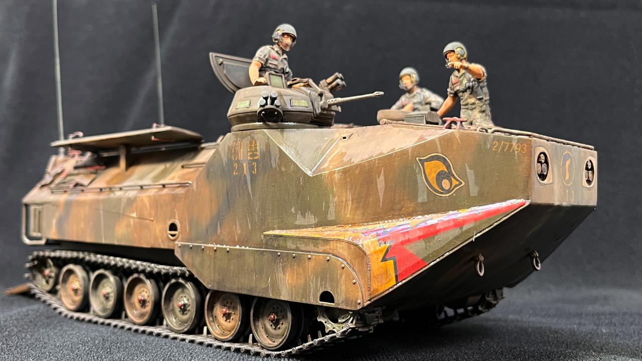 바다에서 막 올라온지 얼마되지 않은(아마도 탑승병들이 모두 뛰쳐나간 후) 시점을 생각하고 만들어서 차량 상판에도 골진곳들에는 아직 물기가 남아있는 표현을 해주었습니다.