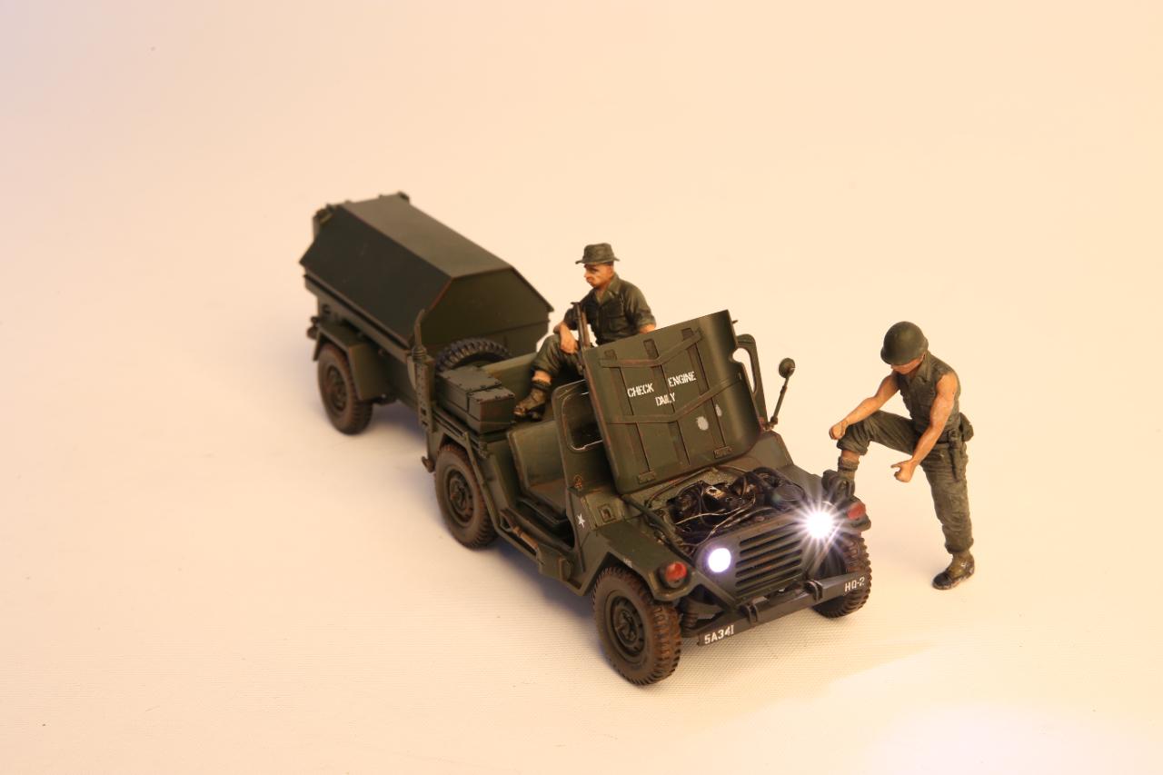 베트남전쟁 디오라마 제작중 M113을 대체할 것으로 M151를 제작하였습니다. 뒷 트레일러에는 건전지를 넣어서 앞 해드라이트에 LED조명이 작동하게 하였습니다. 피규어는 M113에 있는 것을 사용하였습니다.