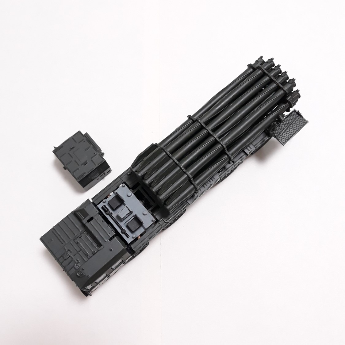 미사일 부분이 조립이 까다롭습니다. 나선형 구조로 되어있는 12개를 일일이 끼워넣어야 하므로 쉽지 않습니다.