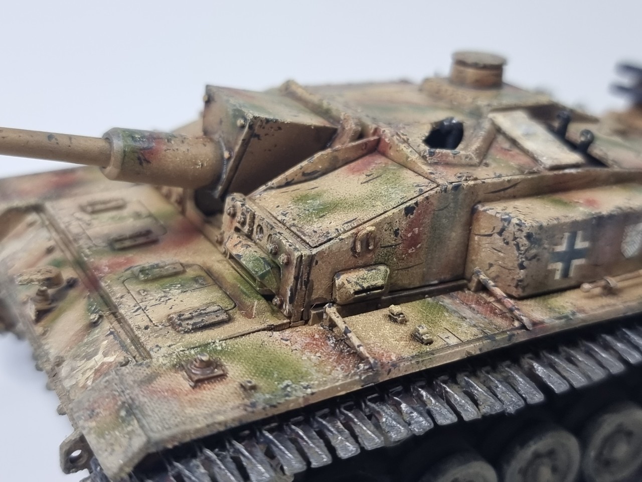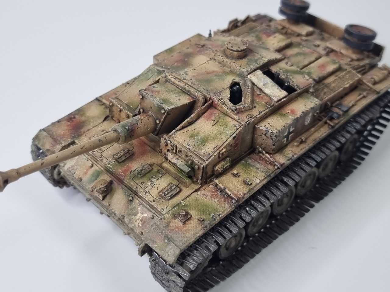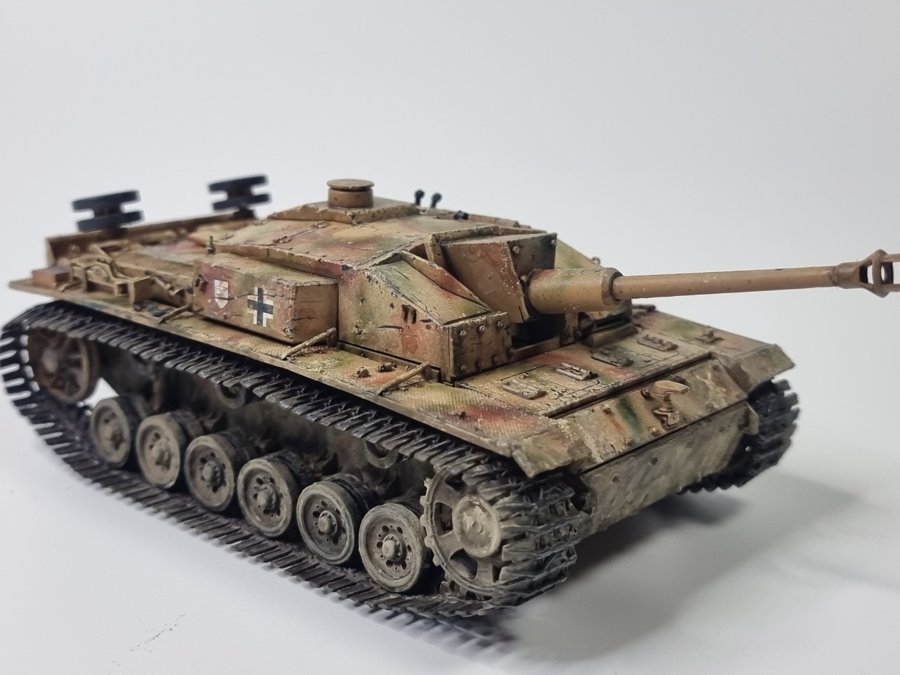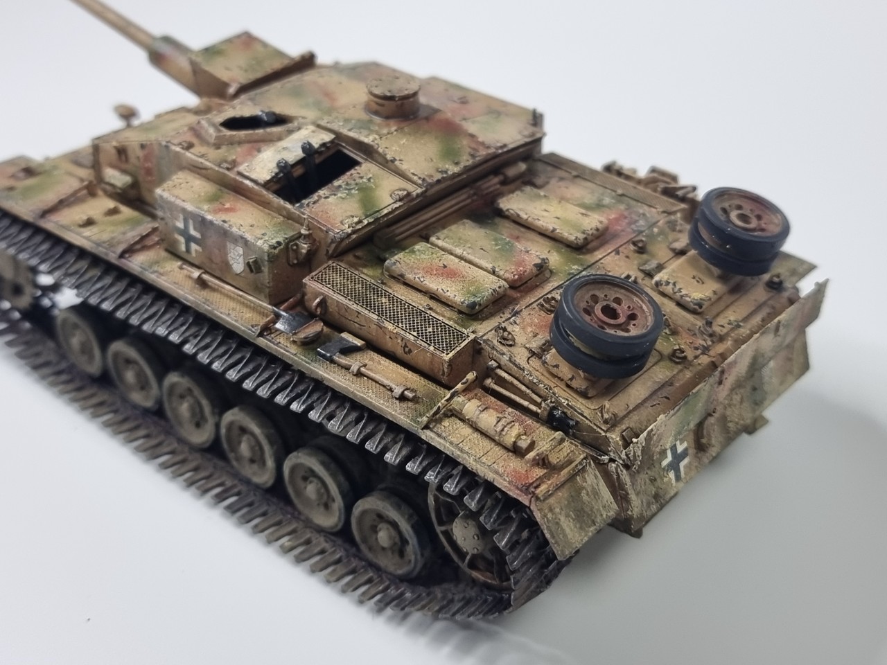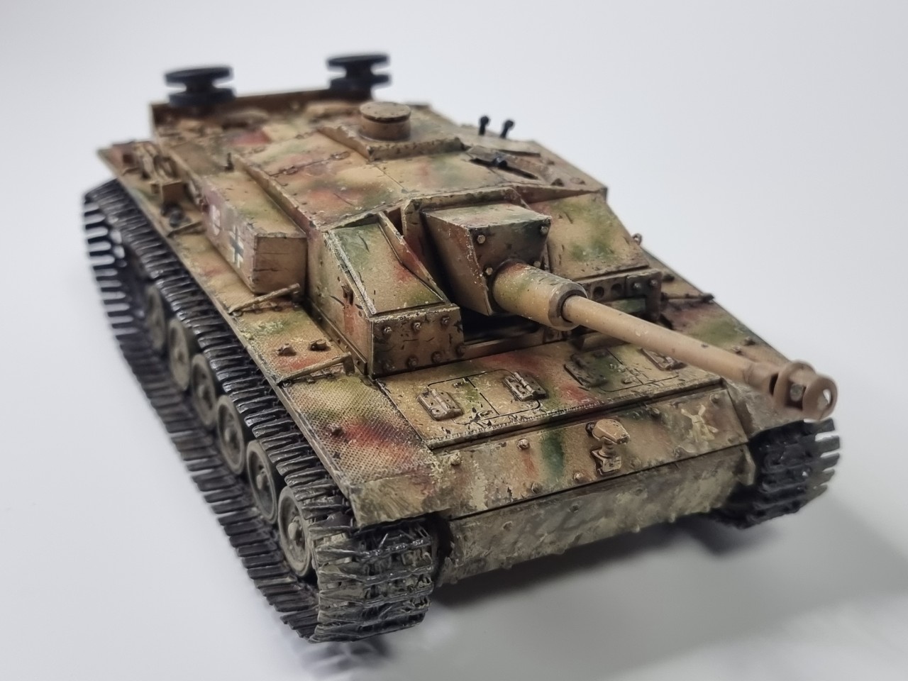 안녕하세요. 긴 더운 여름 동안 틈틈이 작업한 StuG III Ausf. F/8 드래곤 제 구형 모델입니다. 아마 10년 전에 조립하고 방치했다가 오늘 도색 완료 했습니다. 원래는 동계형 궤도라 동계 위장 무늬 단계로 가야 하는데 더운 날씨 탓에 그냥 삼색 위장무늬에서 멈췄습니다. 즐거운 모형 생활 되세요. ^^