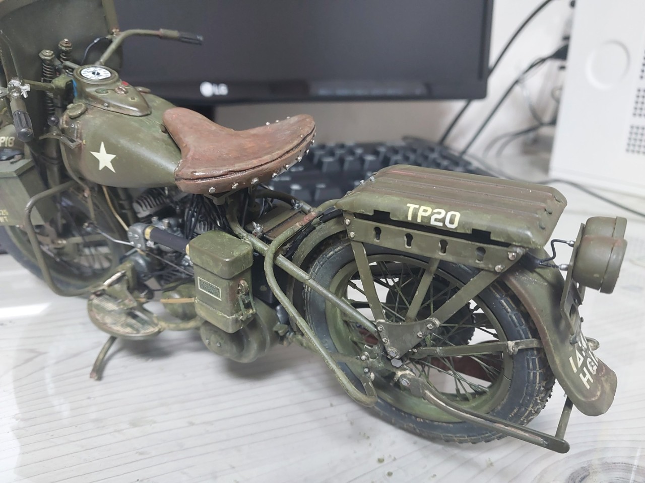 이탈레리제 할리데이비슨을 만들어보았습니다. 핀, 알루미늄판, 철사 등을 이용해서 디테일업해주었습니다. 라이플은 아직 미완성이라 생략했으니, 너그러이 봐주십쇼..ㅠㅠ