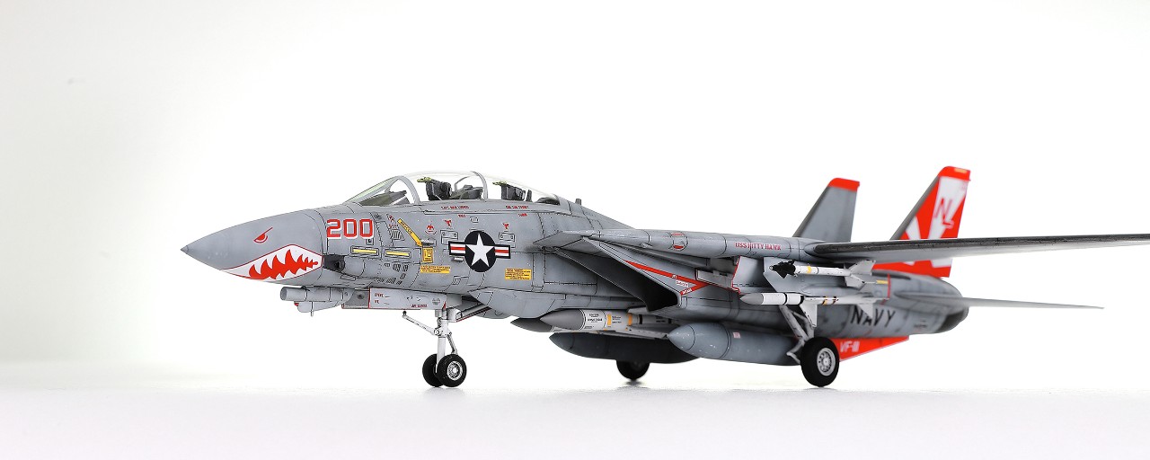 안녕하세요. 두번째 만들어 본 아카데미 1/72 Tomcat 입니다. 문득 선다우너스 마킹이 멋져보여서 별매데칼을 적용해주었습니다. 데칼 품질이 좋아서 어렵지 않게 적용해주었습니다. 오리지널 도색은 더 밝고 노란색이 도드라지는데 강렬한 적색과 어우러지게 차가운 색감을 적용했습니다. 늘 그렇듯 웨더링은 약간의 소금끼만 표현하고 깔끔한 선에서 마무리했습니다.