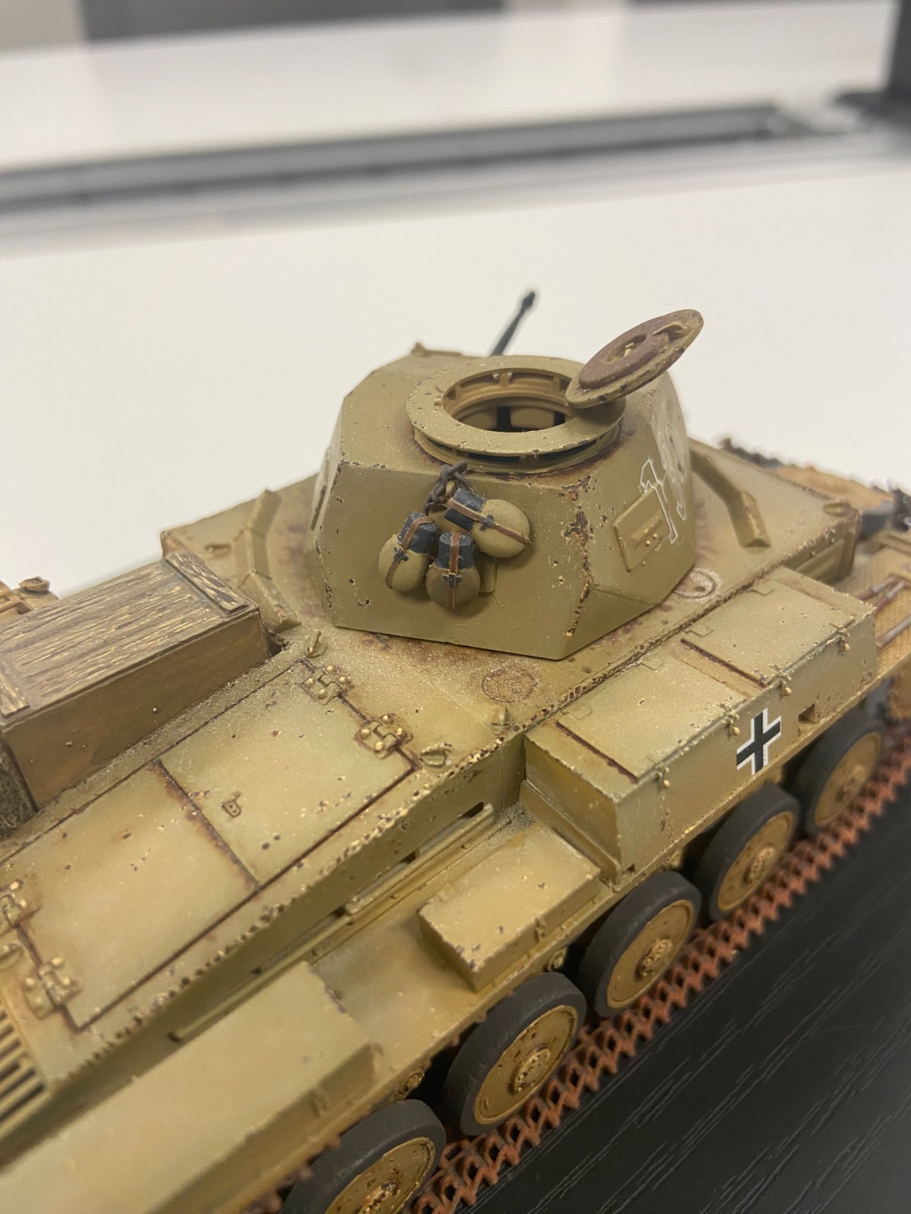 안녕하세요. 저희 동호회 이벤트로 만든 지 좀 된 걸 생존 신고 겸 해서 이제야 올립니다. 아카데미 2호 전차 아프리카 군단입니다. 이벤트 때문에 동호회에서 자체 제작한 차량 번호 마킹을 사용했습니다. 사진 화질이 좋지 않으나 잘 부탁드립니다.