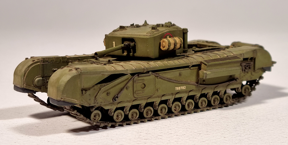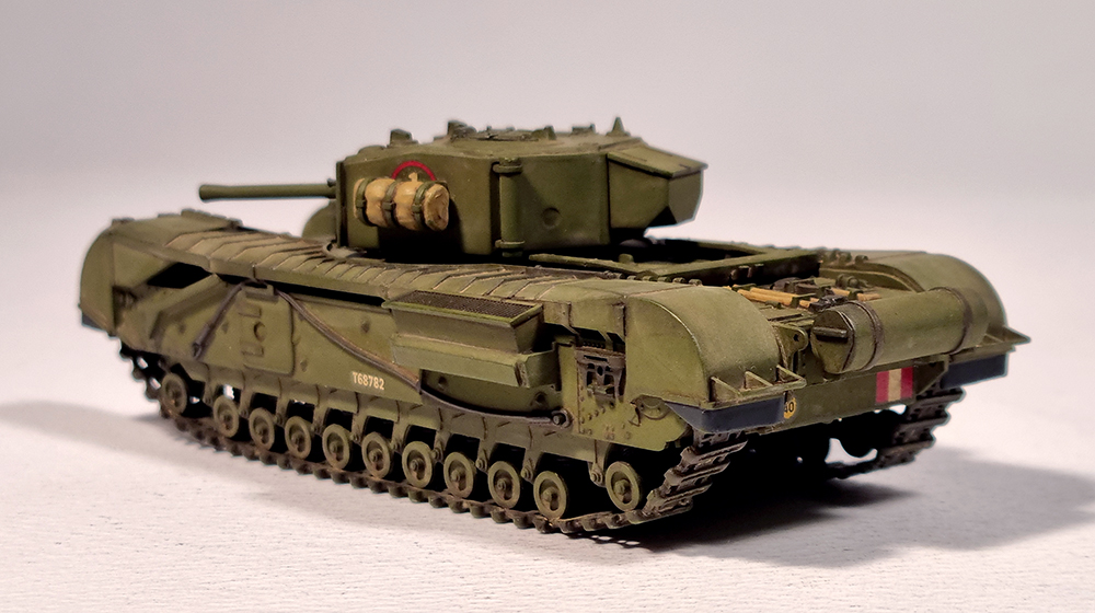 처칠 전차도 족보가 좀 복잡한데, 우리가 가장 많이 접해서 익숙한 1/35 타미야 처칠 전차가 Mk.VII인 것을 봐서 이 Mk.III 처칠 전차는 다소 전기형인 것으로 짐작됩니다. 주포나 포탑이 빈약하고 촌티가 납니다만 각진 포탑 전면부가 박력이 있습니다.